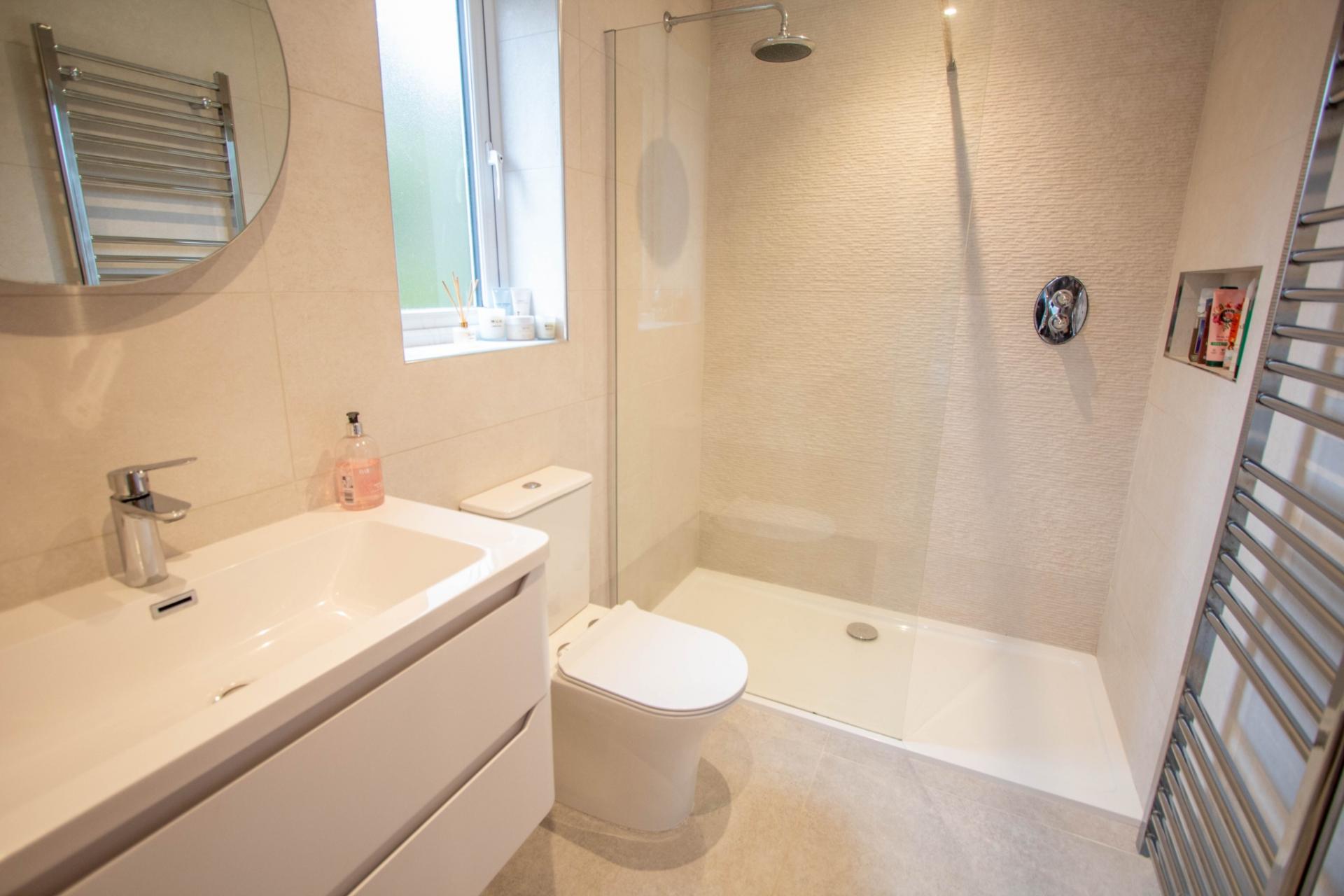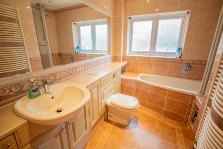 On the first floor there are 4 double bedrooms. The master has a dressing area with a range of wardrobes, an en-suite shower room with tiled walls and flooring with underfloor heating, a guest bedroom with built-in wardrobes and an en-suite shower room and 2 further bedrooms both with built-in wardrobes and a family bathroom suite.