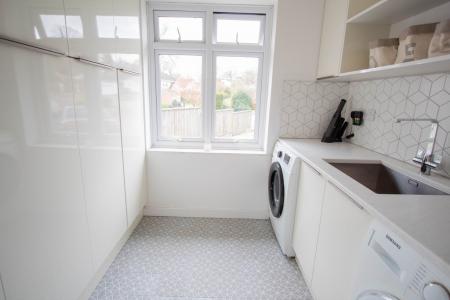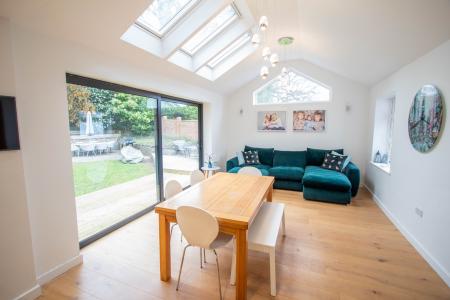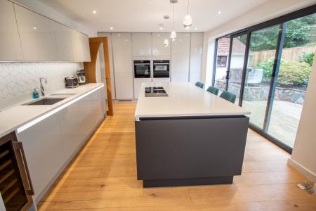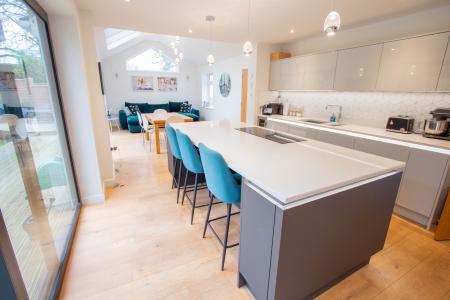 The accommodation comprises, entrance hallway with underfloor heating and ceramic tiled flooring and under stairs built-in storage, a cloakroom with underfloor heating, living room, a lovely dual-aspect room with fireplace, a bedroom/playroom with French doors into the rear garden and a study/office. The kitchen/dining/family room is an impressive room with a vaulted ceiling at one end and skylight windows. The kitchen is fitted with a range of wall and base units, quartz worktop surfaces, an island unit/breakfast bar, an integrated fridge, separate wine cooler, freezer, and dishwasher, Quooker hot tap, engineered oak flooring with underfloor heating, built-in twin ovens, warming drawer, induction hob and 2 sets of large patio doors, off this room is a boot room and utility room which also benefits from underfloor heating.