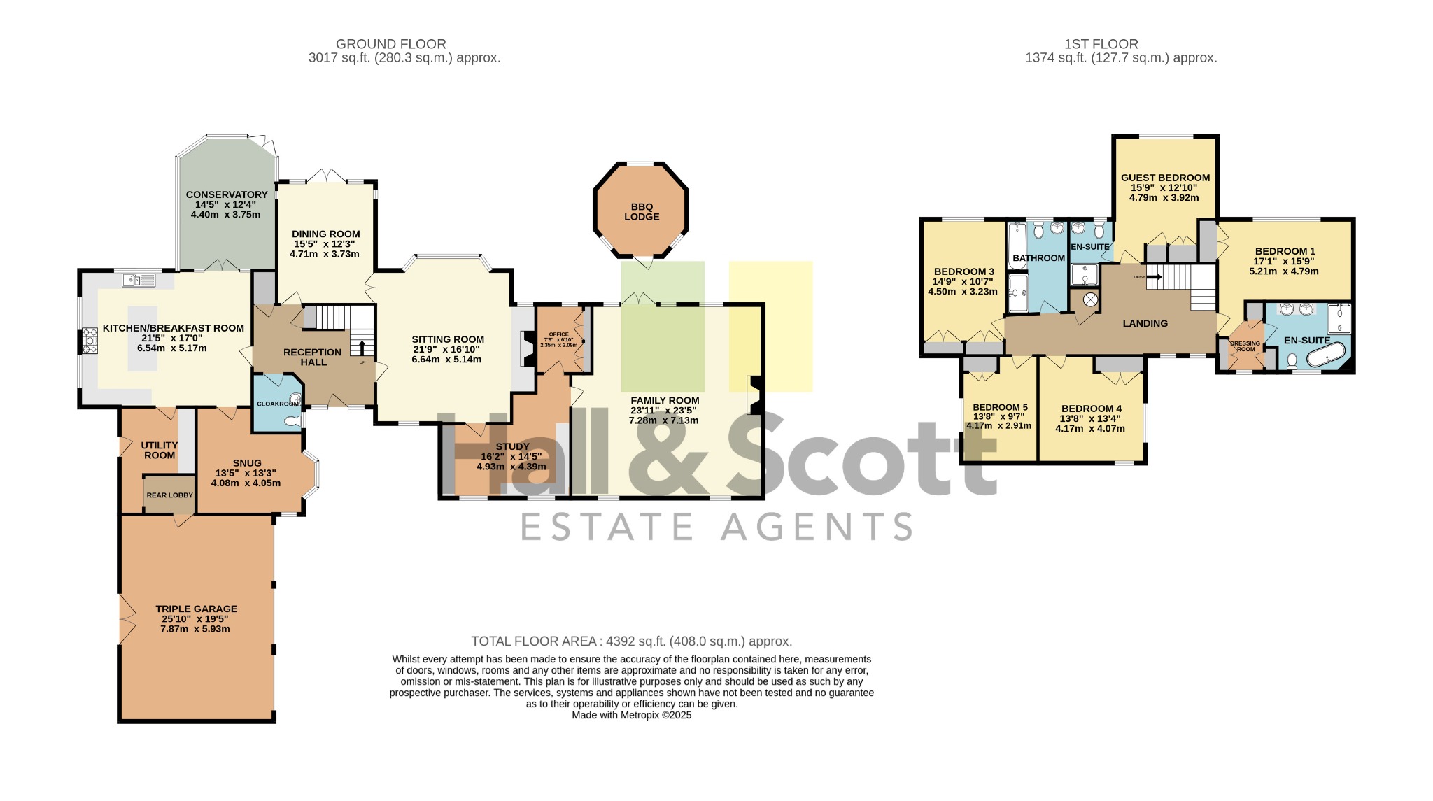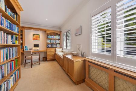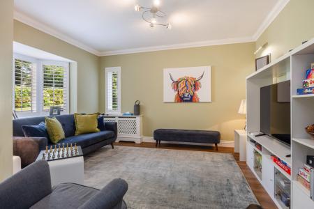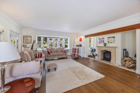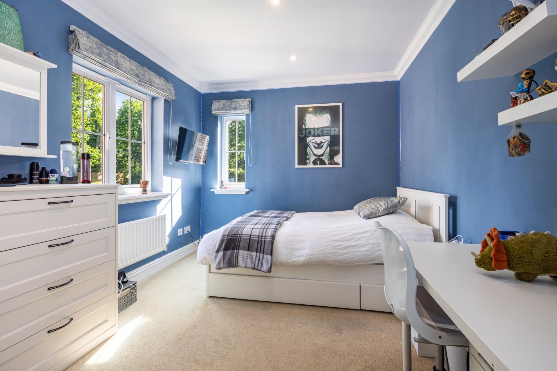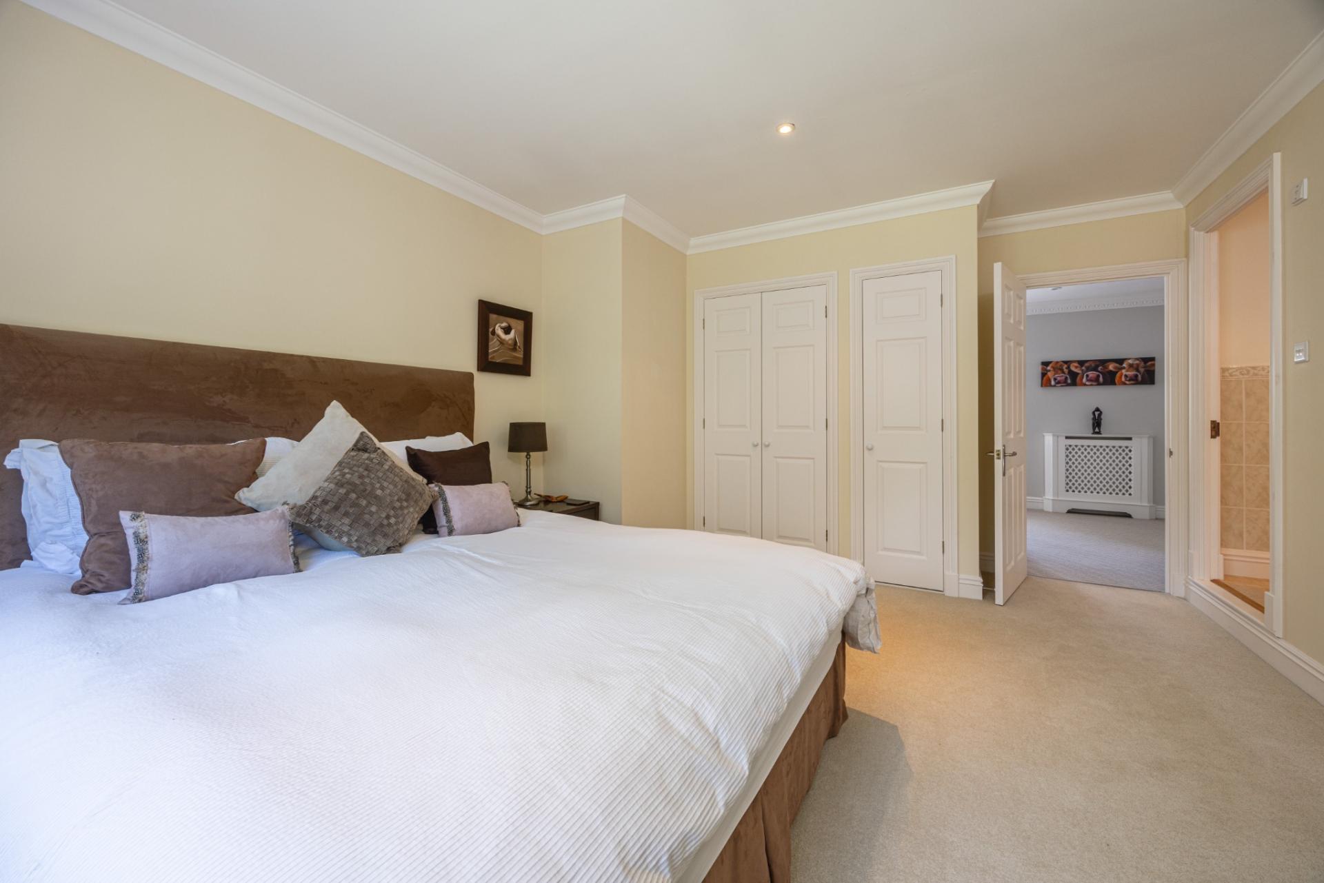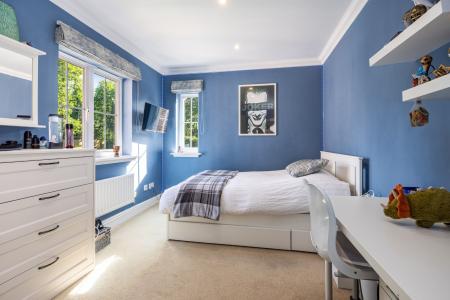 Upstairs, there are five bedrooms. The principal suite boasts a dressing area and a stylish en-suite bathroom with a freestanding double bath and a walk-in Roper Rhodes shower. The guest bedroom includes built-in wardrobes and its own en-suite shower room. Three further bedrooms all with built-in wardrobes and are served by a well-appointed family bathroom.