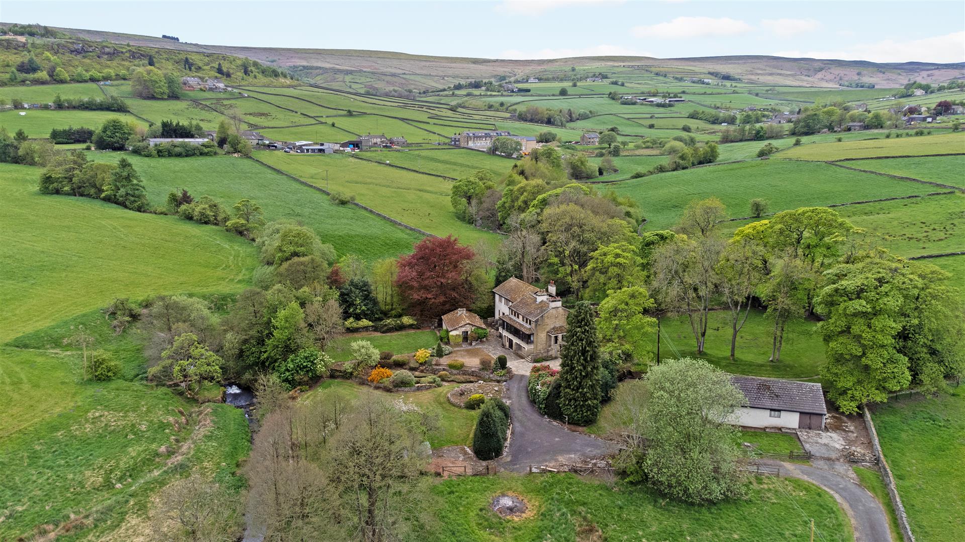 - THREE LAWNED GARDENS WITH STREAM AND BRIDGES