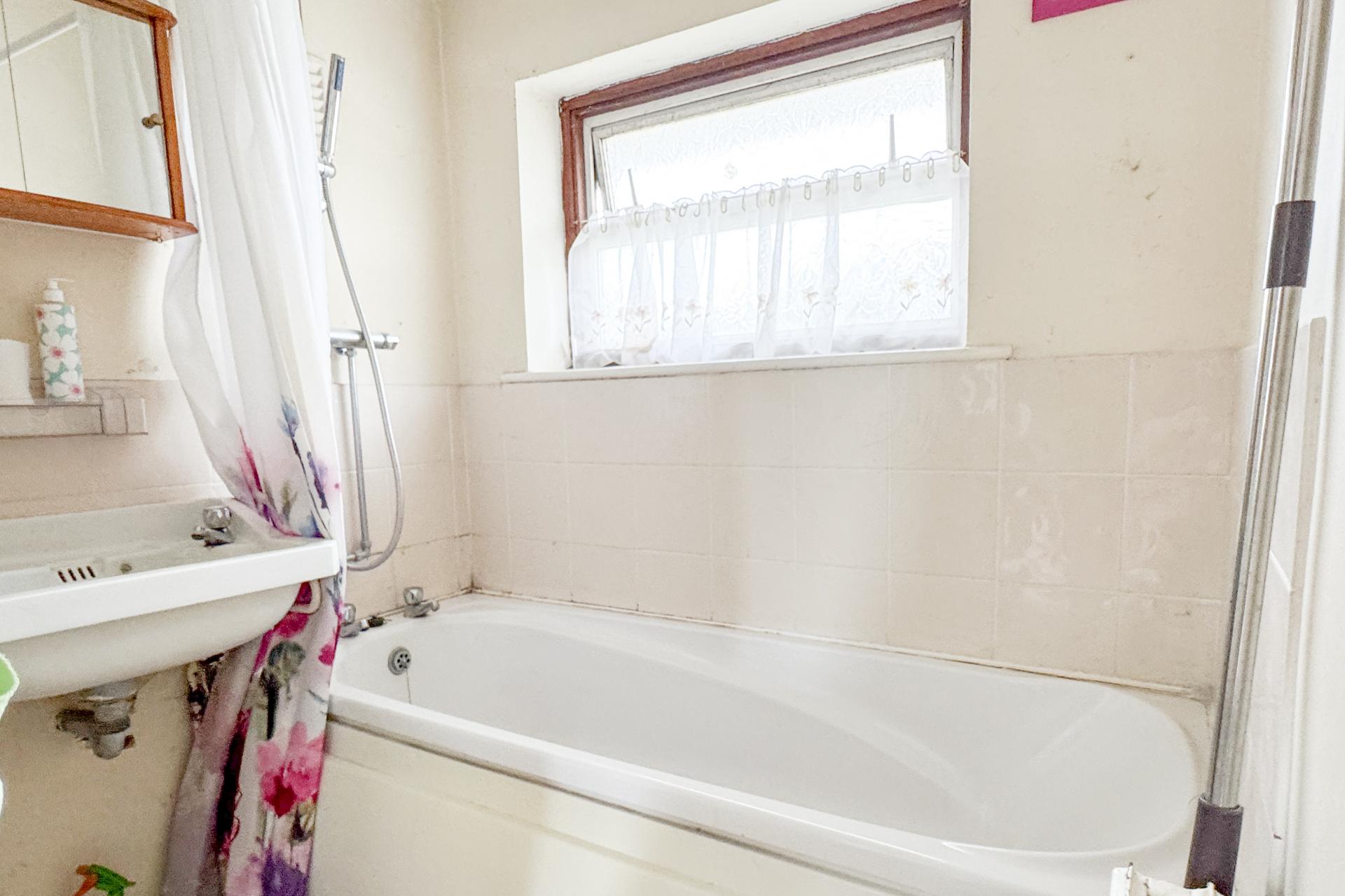 On the first floor, the property offers three bedrooms, two doubles and a smaller third ideal as a study or nursery. The family bathroom completes the upper floor, with scope to re-style or extend the layout depending on your needs.