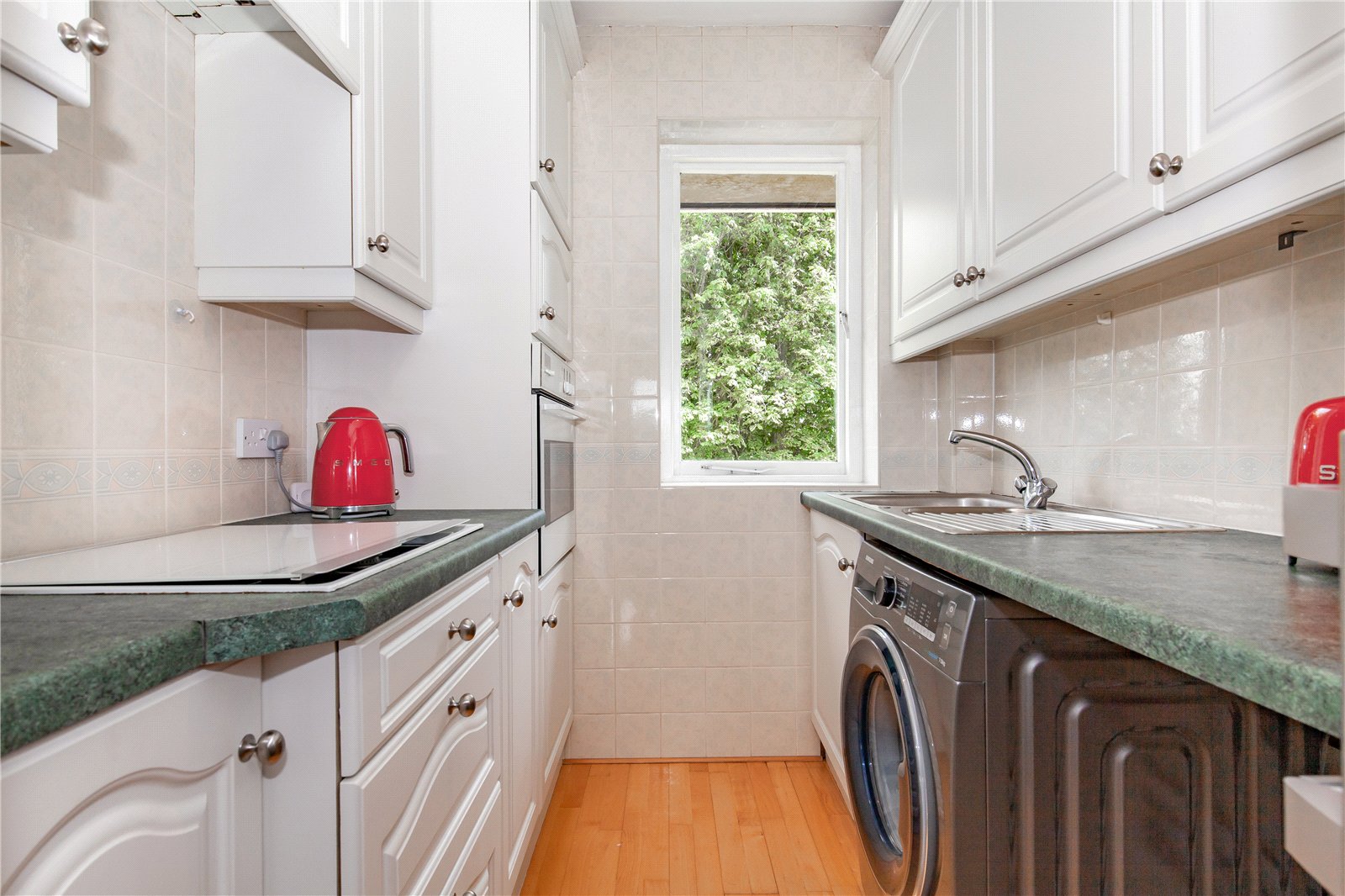 Located on the second floor, this bright and airy apartment opens into a central entrance hall with several useful storage cupboards. To one side is the kitchen, arranged with fitted units and workspace.
