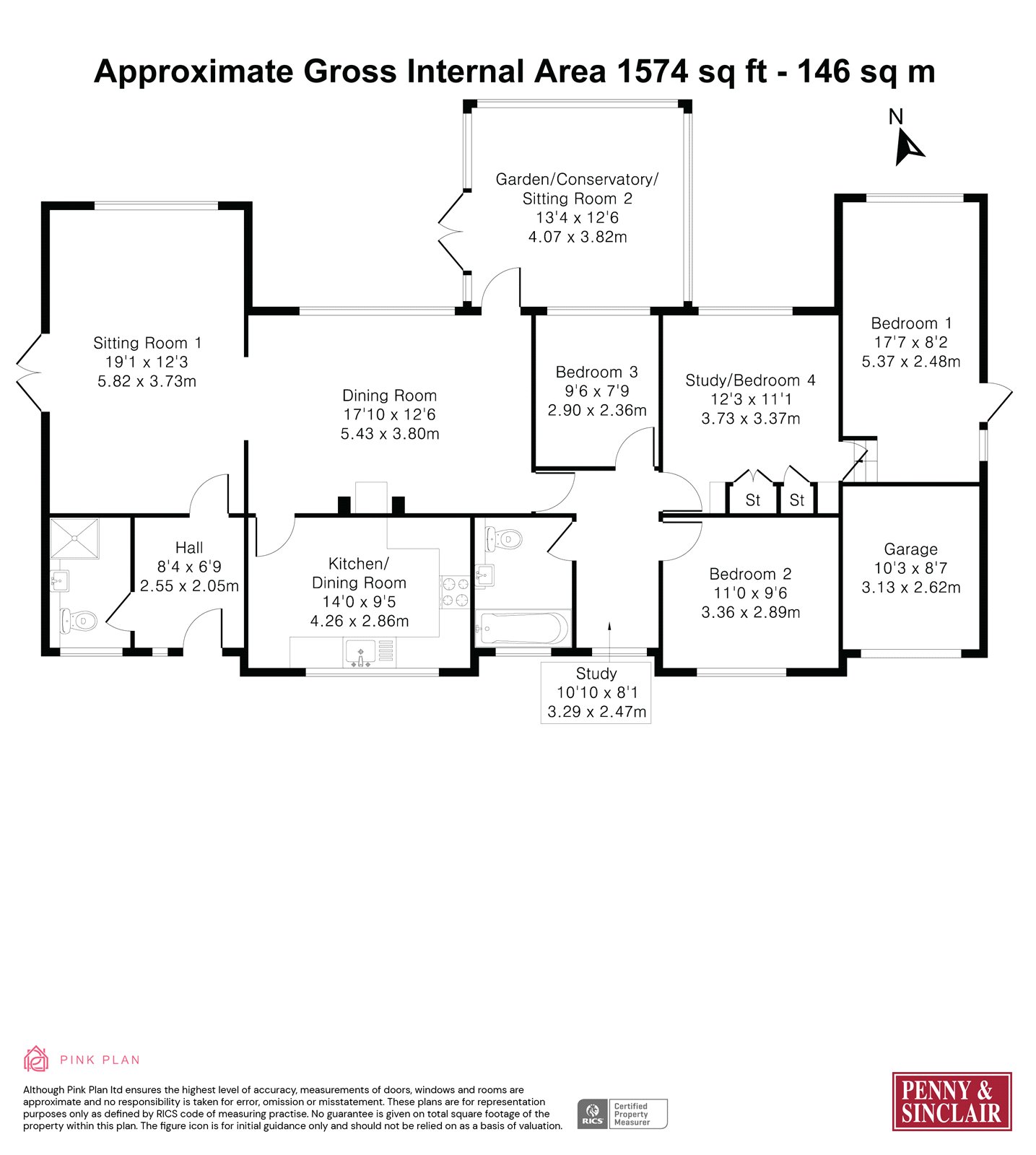 The largest bedroom overlooks the garden at the rear with a private and secluded feel. The back part of the garage has been converted to provide another excellent double, and with its own access to the outside, this also works well as a studio/workspace. There is another spacious double while the fourth bedroom is a generously sized single.