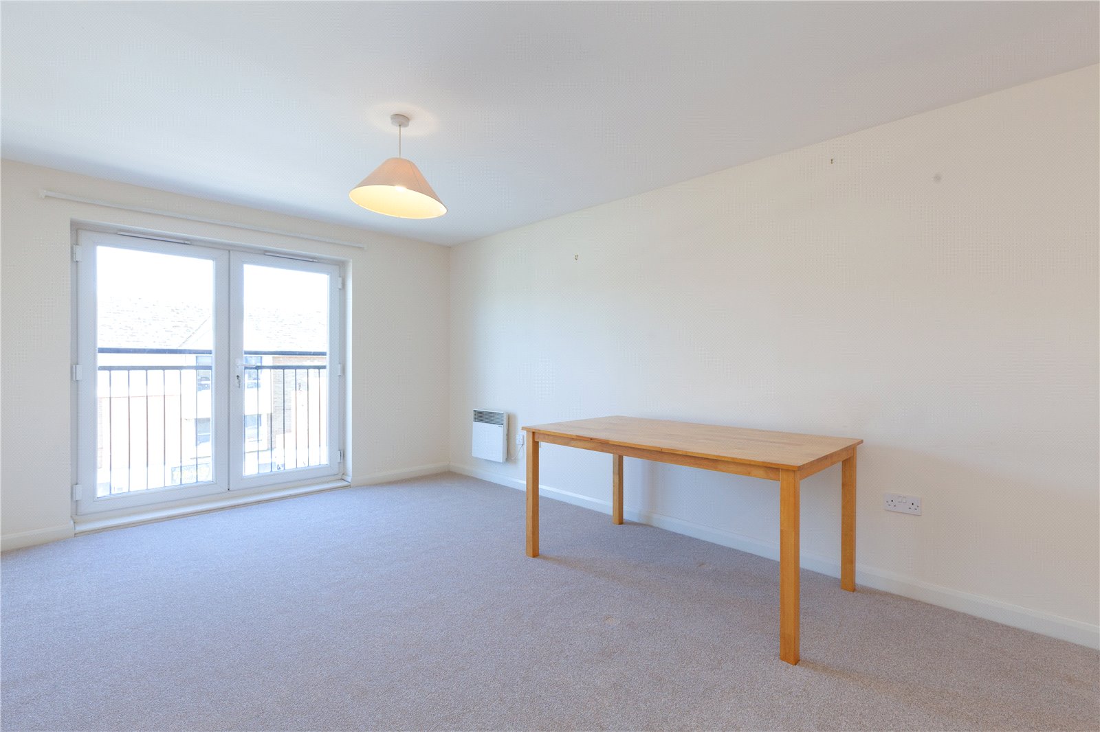 To the rear of the apartment is a modern kitchen/living room benefitting from glass double doors, which allow natural light to flow throughout the room and provide access to the balcony.