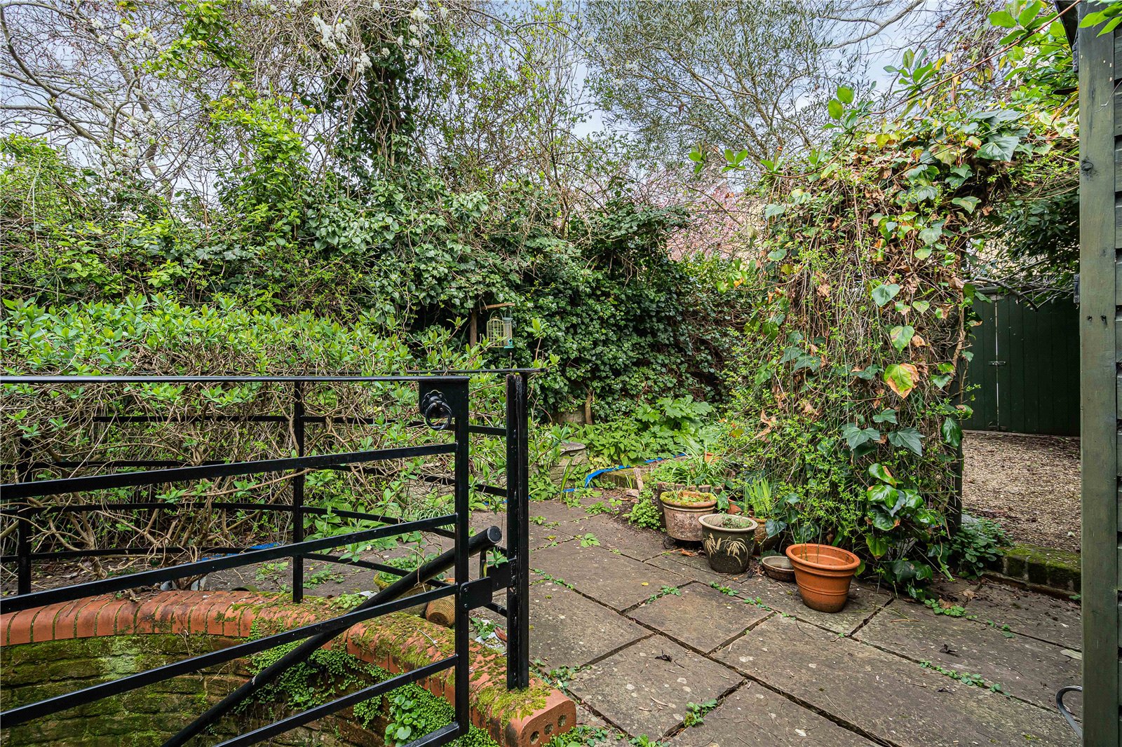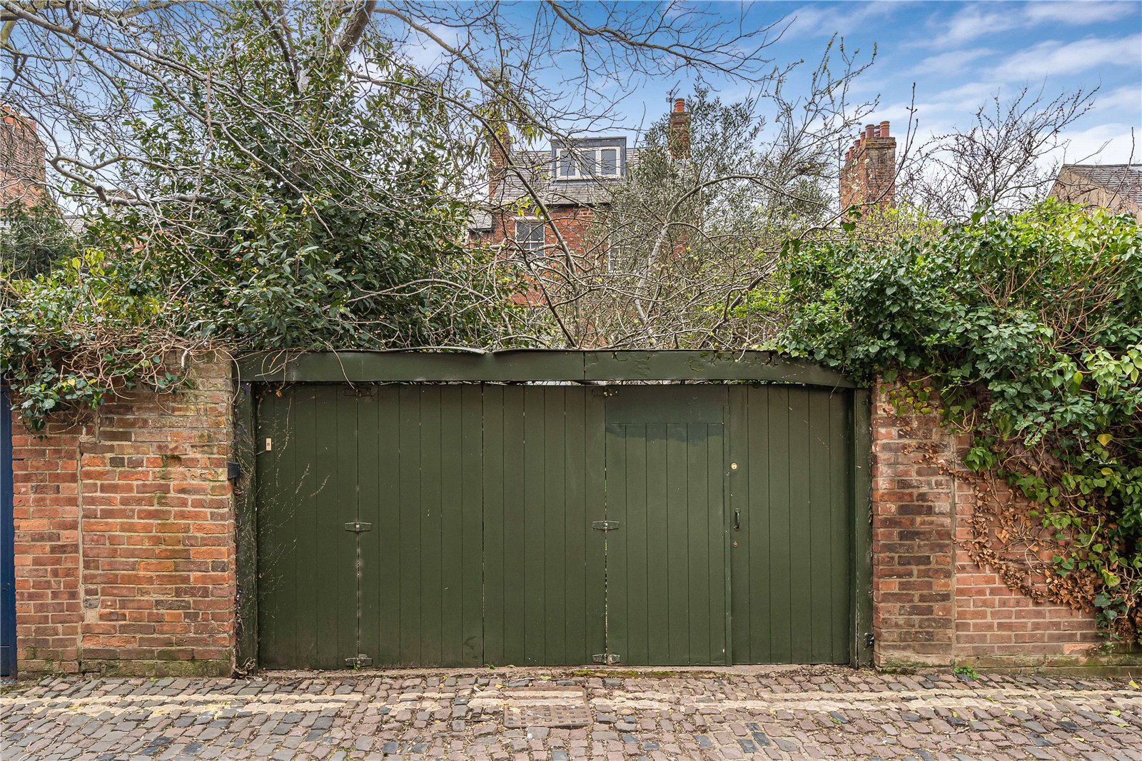 To the exterior, the quiet and secluded garden is mainly paved with mature shrubs. It also includes a parking space which can be accessed from the rear gate to Pusey Lane. Steps lead down from the garden to the lower ground floor living space.