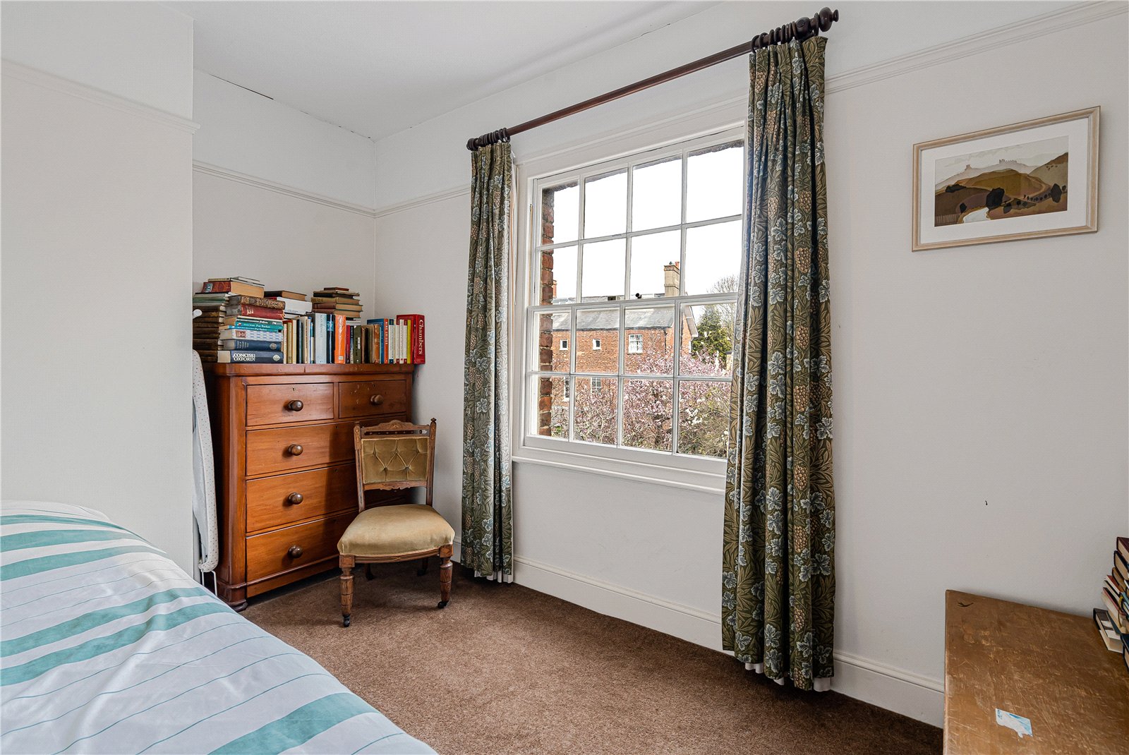 The first floor offers a double bedroom to the rear, family bathroom and a further double bedroom, currently arranged as a sitting room, to the front which enjoys a westerly aspect. Upstairs sits the principal bedroom, shower room and a further bedroom. On the top floor is a spacious bedroom with beautiful double aspect views to the dramatic city skyline, Wytham Woods and beyond.