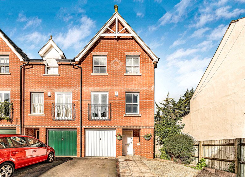 At the front, the property benefits from off street driveway parking for two vehicles as well as entry to a single integral garage. There is side access to the rear, where there is an enclosed West facing garden with lawn and paving. The end-of-terrace location means that the garden is not overlooked and the upper landings receive good natural light.