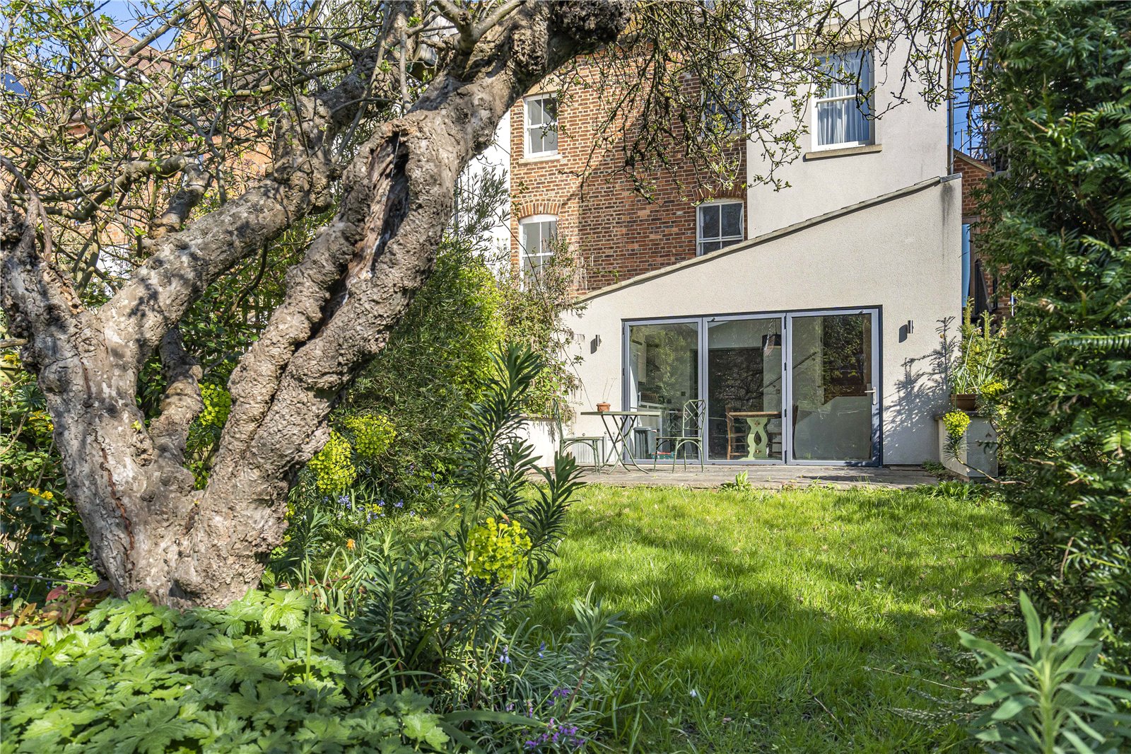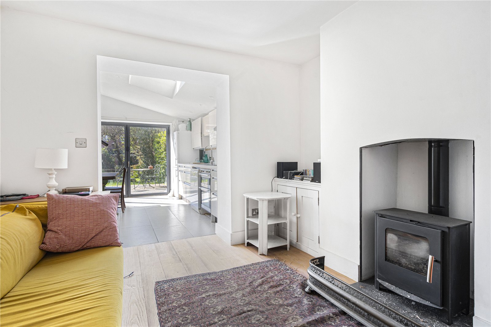 On the ground floor, the drawing room benefits from bay window to the front and fireplace. The living room to the rear is currently arranged as a bedroom and has views to the garden and canal beyond. Downstairs, on the lower ground floor the property benefits from an exceptionally light open-plan kitchen/dining room with bi-folding doors to the west-facing garden. This room leads to the sitting room with log burner, useful utility and shower room to the front.