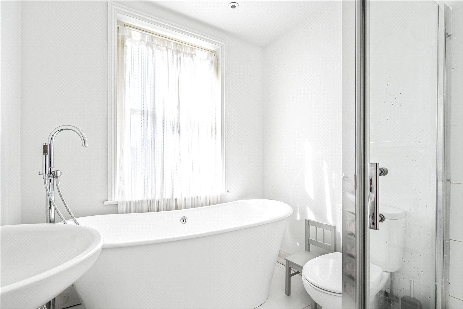 Upstairs, on the half landing, the family bathroom includes stand-alone bath and separate shower. On the first floor, to the front, the double bedroom benefits from built-in storage and an en suite shower room. There are two further bedrooms on this level, both with canal views. On the second floor, the master bedroom also benefits from an en suite shower and features a small kitchenette.