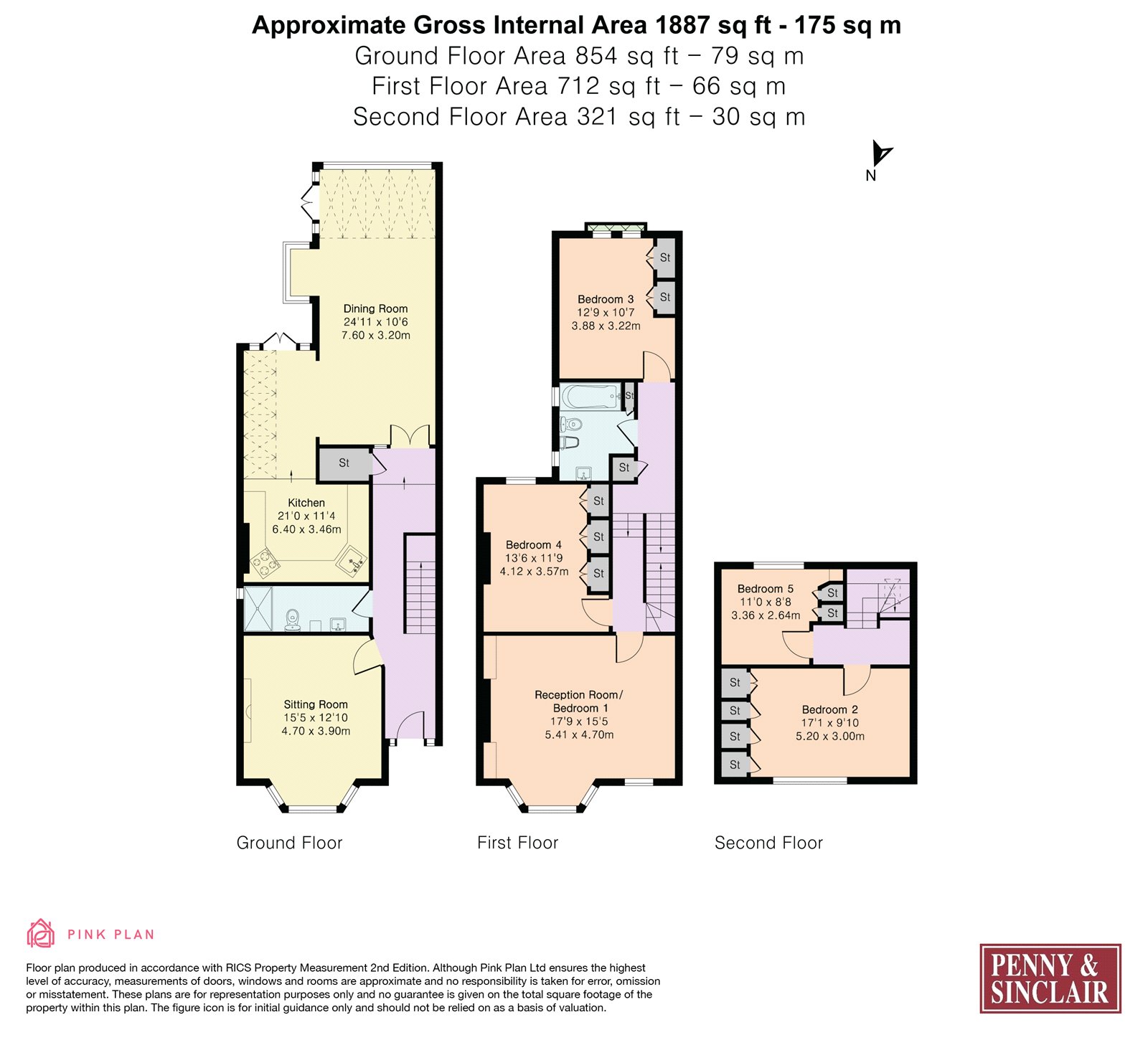 On the first floor, to the front is a large principal bedroom, currently being used as a reception room, with a bay window and original fireplace. There are also two double bedrooms on this level, both benefitting from ample storage and views to the garden and Summerfield’s playing fields beyond. The family bathroom is also on this level. Upstairs are two further bedrooms, both with built-in storage.