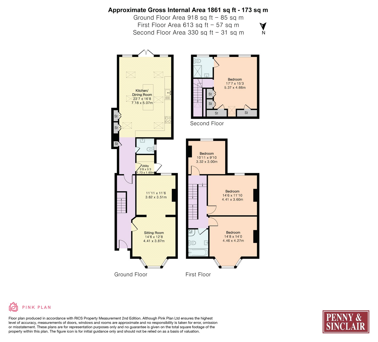 On the first floor there are three double bedrooms and a family bathroom with bath and separate shower.