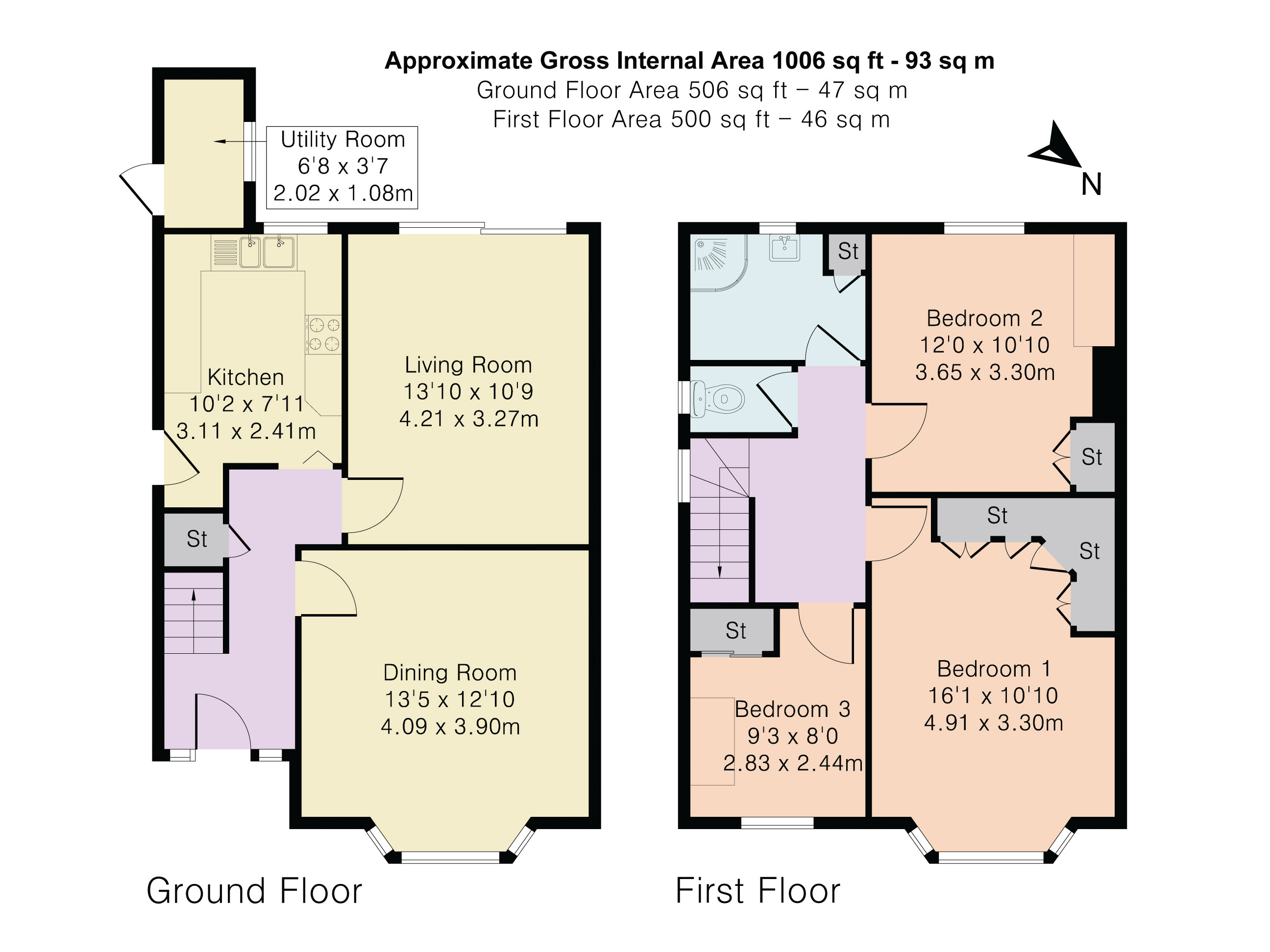 On the ground floor sits an entrance hall, primary reception, second reception with access doors to the garden and a fitted kitchen. There is a very useful covered side access and utility area. Upstairs are three bedrooms - two doubles and a single and a shower room with thermostatic power-shower and a separate toilet.