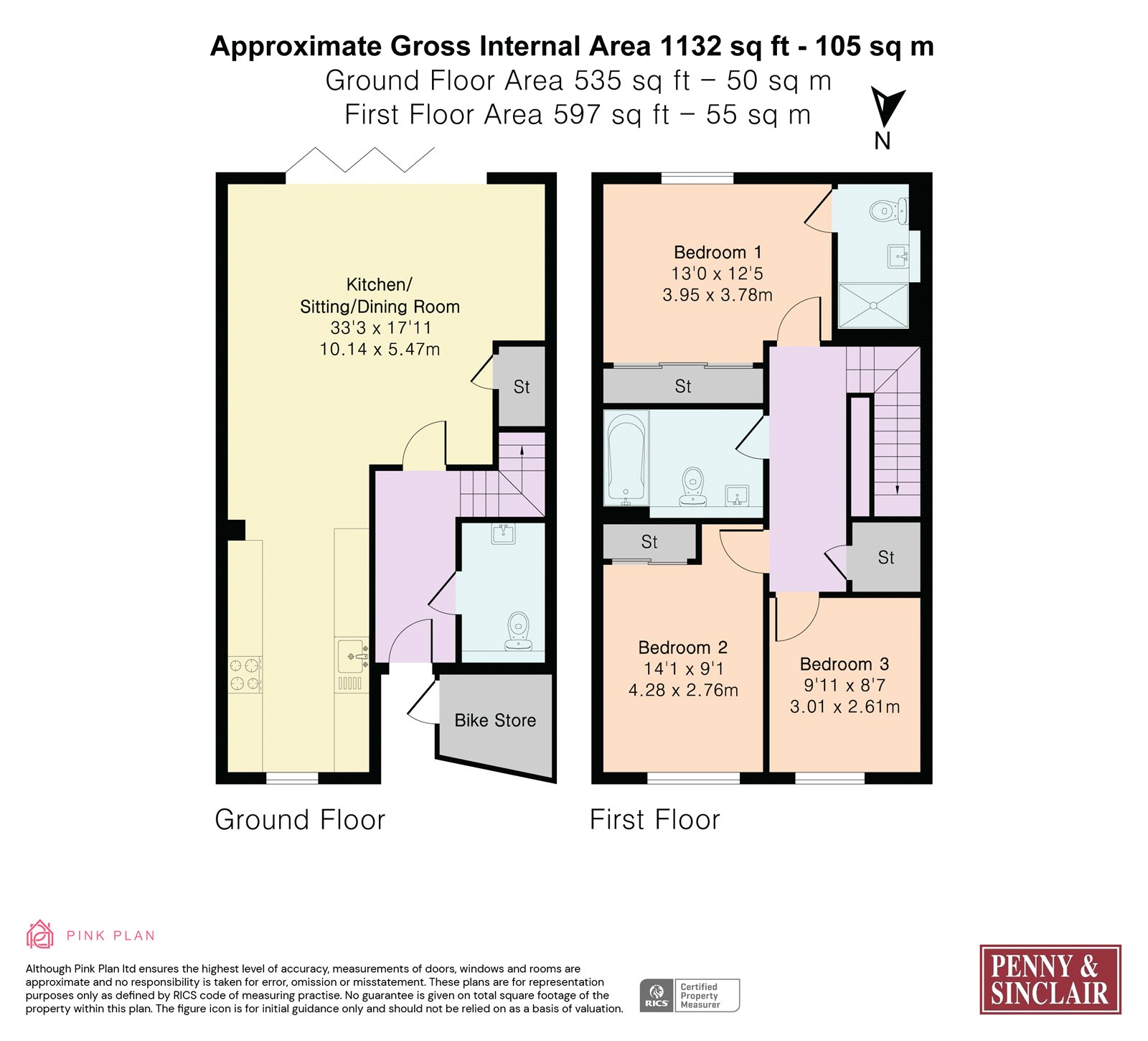 The first floor offers a spacious ensuite master bedroom to the rear of the property, featuring a fitted wardrobe. Additionally, there are two further double bedrooms at the front, a large family bathroom and built-in storage.