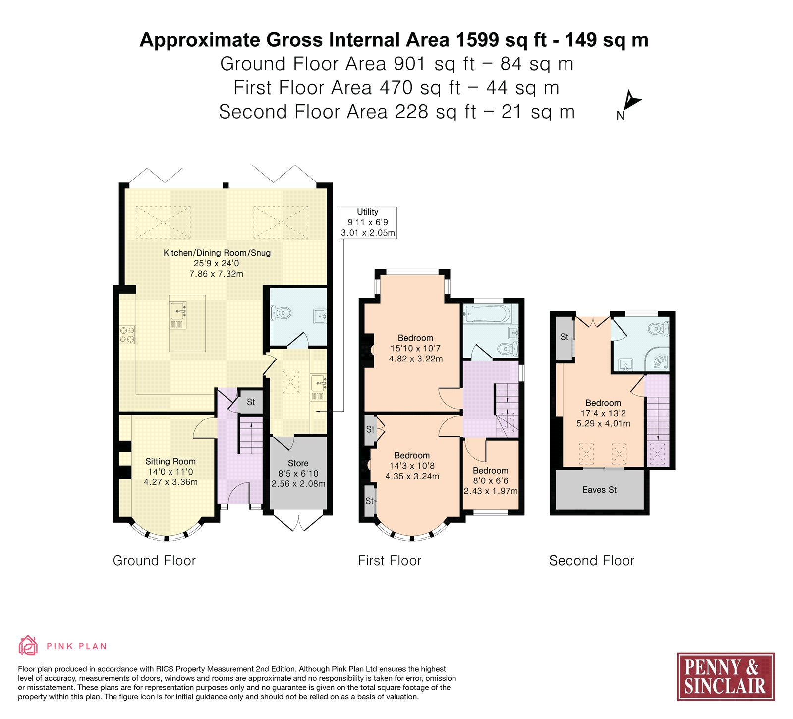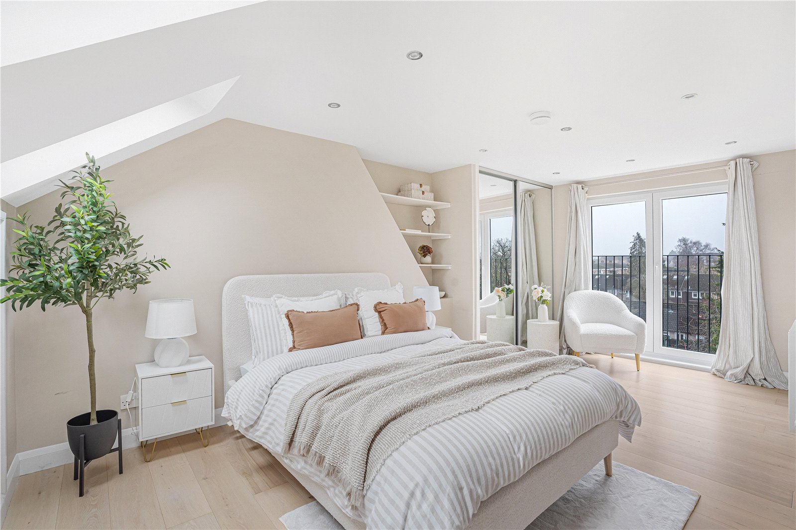 The first floor comprises two spacious double bedrooms, a generous single, and a modern family bathroom. On the top floor, the loft has been converted into a large principal bedroom with Juliet balcony, built-in storage, and a contemporary en-suite shower room.