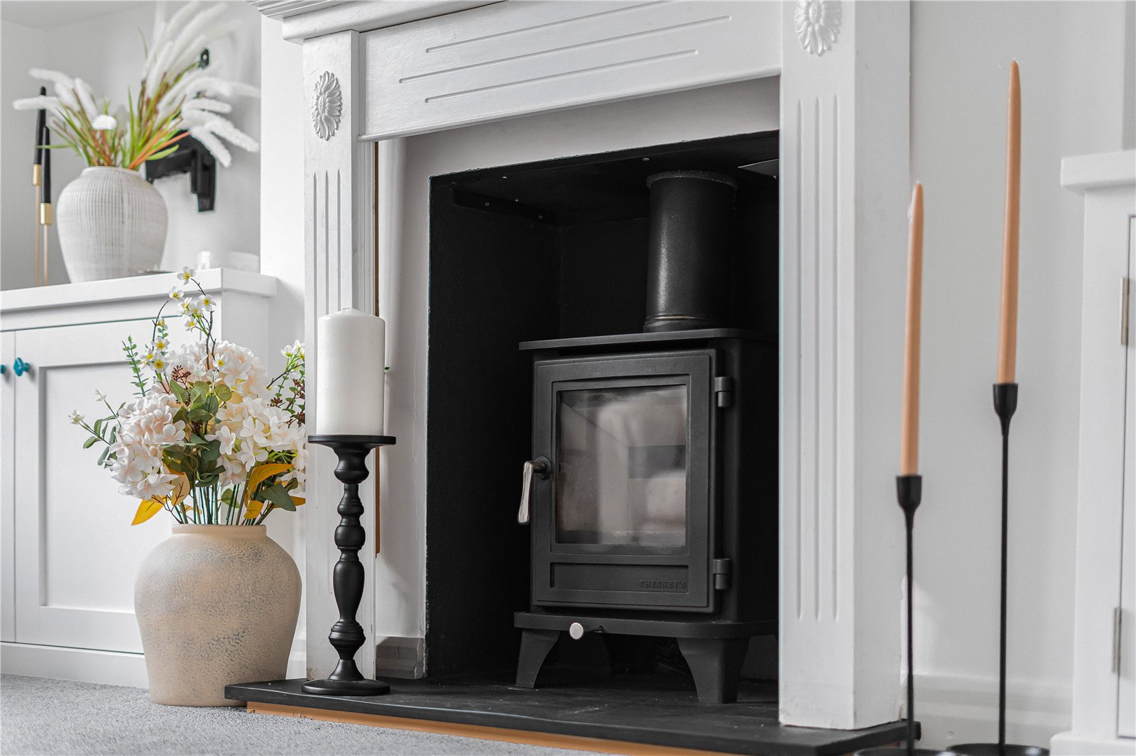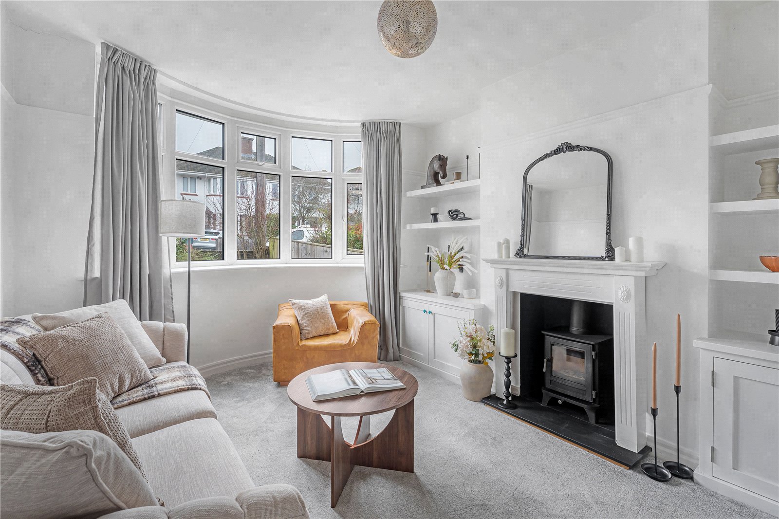 A welcoming entrance hall leading to a bright bay-fronted living room with feature fireplace, perfect for relaxing evenings.
