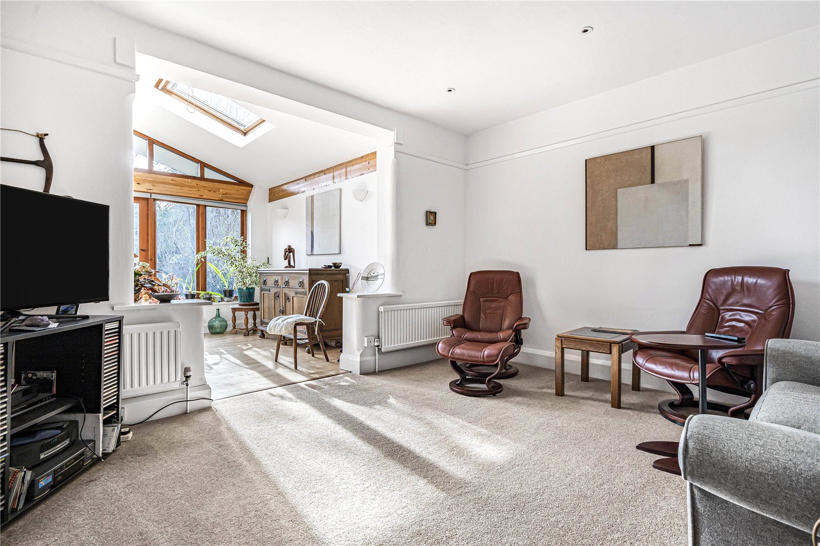 The kitchen is beautifully bespoke and offers ample storage. This leads through to the orangery style extension which offers a wealth of natural light. This space is currently used as a dining area. A further reception room sits off this space, being used a snug.