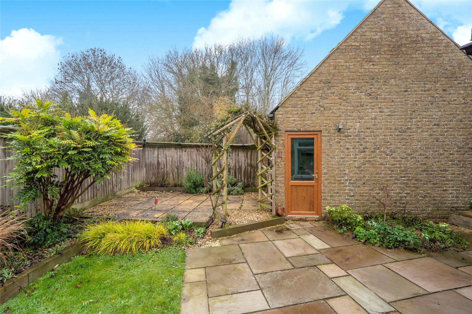 There is side pedestrian access that leads to a private and enclosed rear garden that is not overlooked and laid with a sandstone patio, neat lawn and well stocked flower and shrub beds.