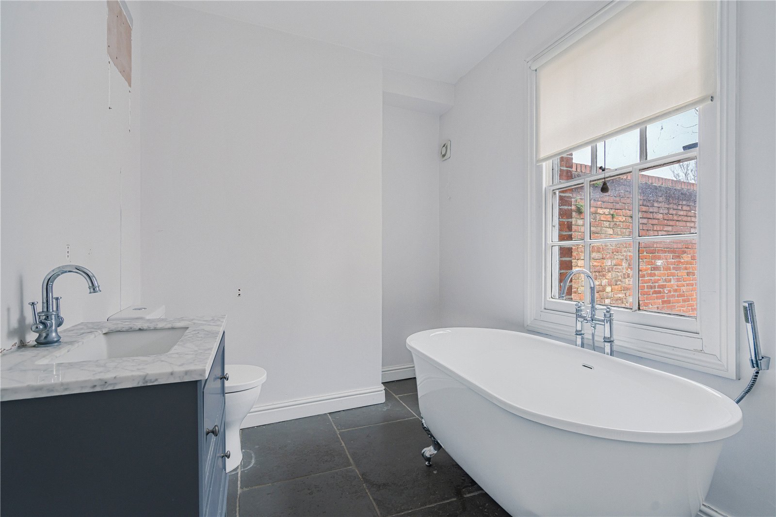 Upstairs are three bedrooms and three bathrooms. The upper floors enjoy beautiful views including a wonderful view of St Philip and St James Church.