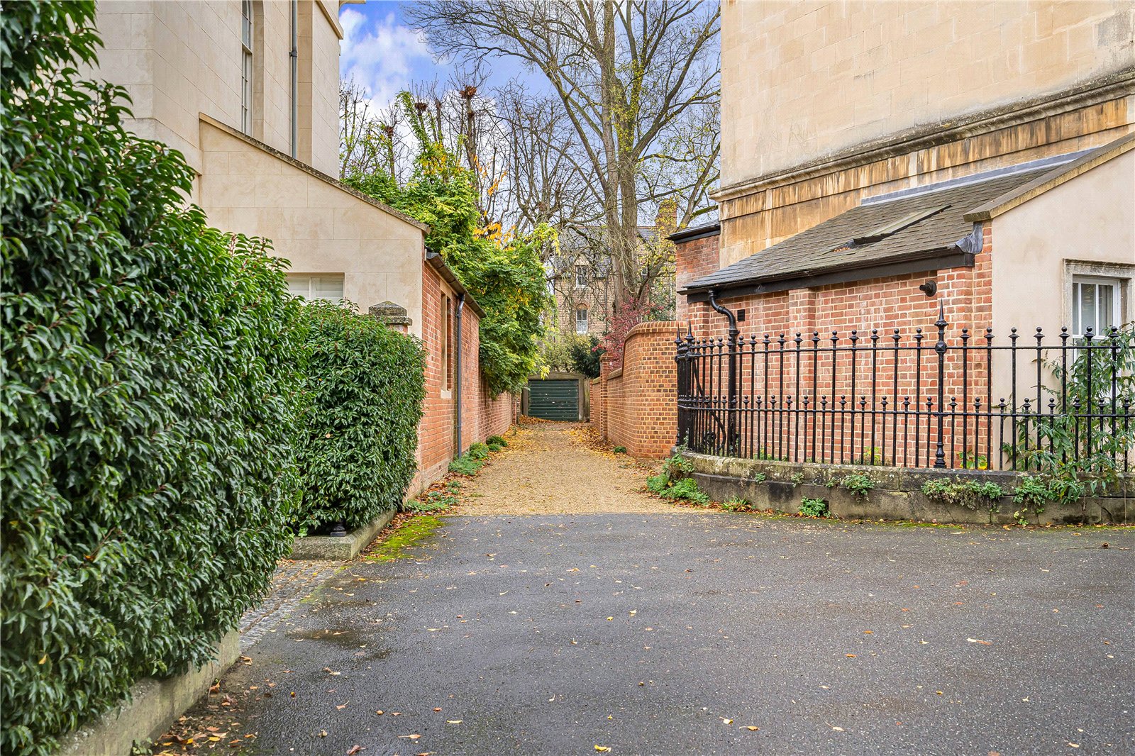 To the exterior, the wider than average walled garden to the rear is mainly laid to lawn with mature shrubs and trees. To the front there is ample off-road parking and outbuildings providing storage to the side. Accessed via a private gravel driveway in Park Town, the garage sits at the foot of the garden, with a rear gate offering a short and pleasant walk to the well-regarded Dragon School.