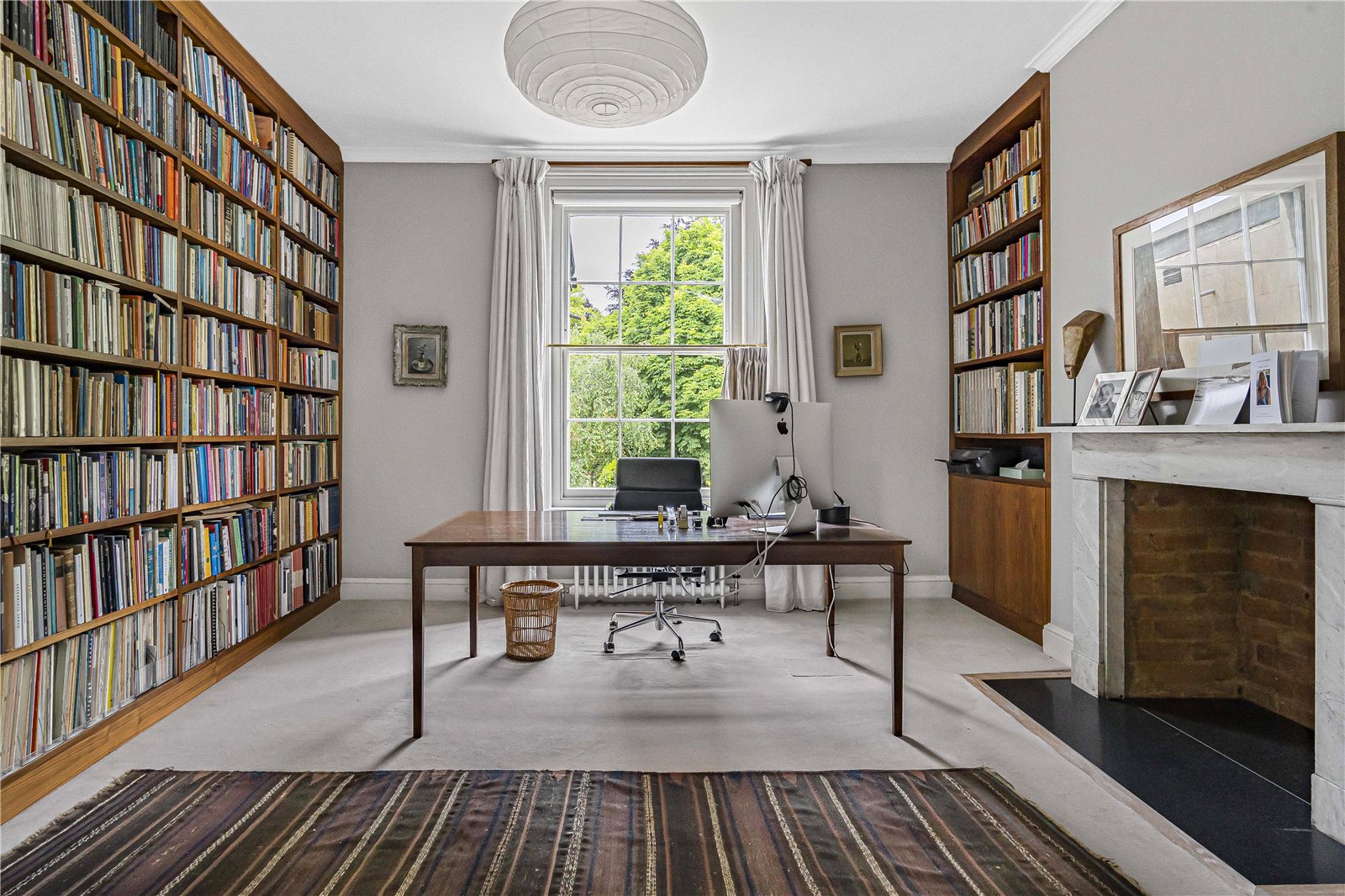 Upstairs, on the first floor the elegantly proportioned drawing room overlooks the Park Town Garden to the front, and double doors open to the library with views to the rear garden.