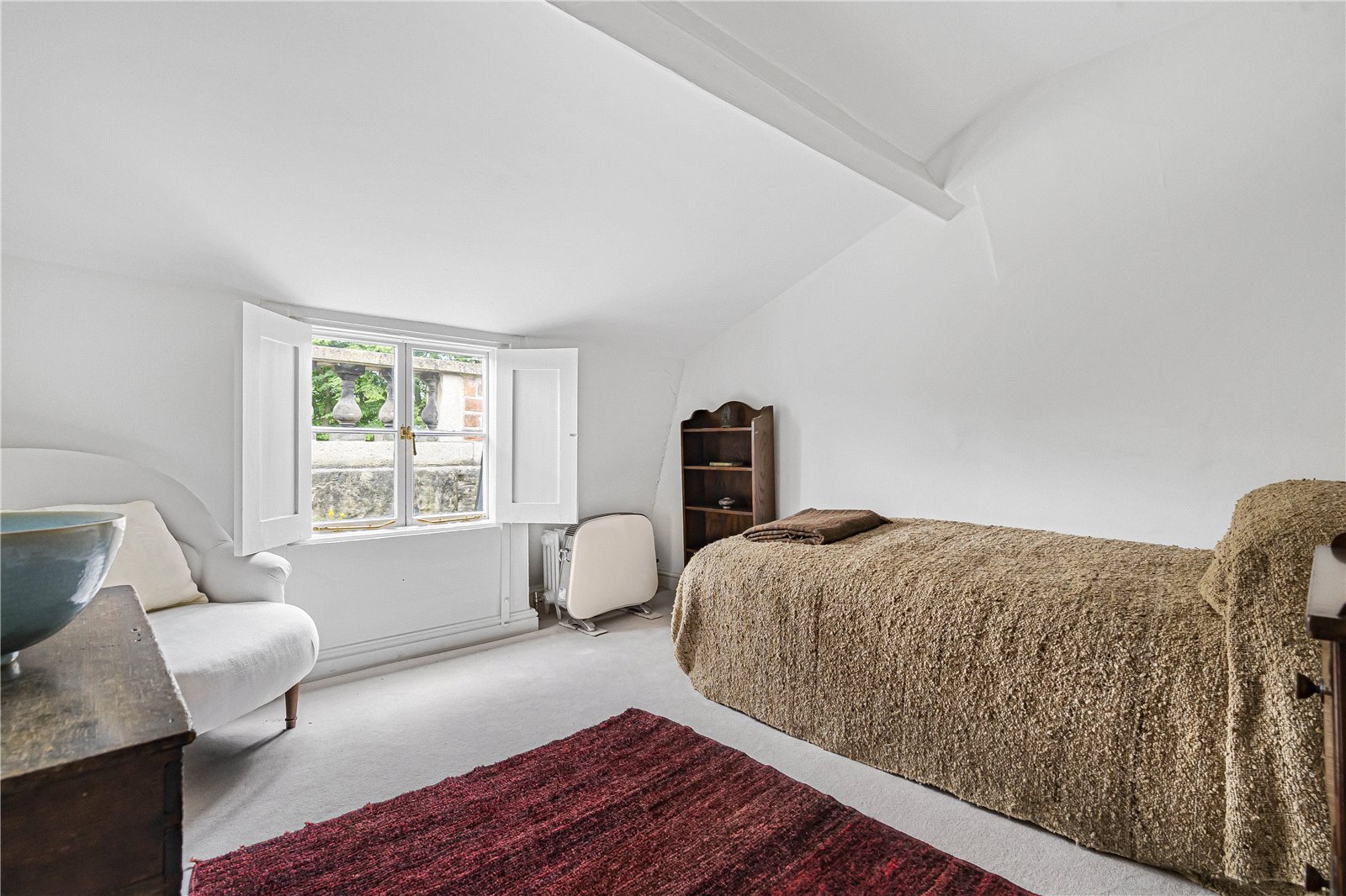 On the second floor, the master bedroom benefits from a large dressing room and bathroom with Lefroy Brooks ceramics including rolltop standalone bath and separate shower. There are two further bedrooms on the third floor both featuring original Georgian shutters and are serviced by a family bathroom and study with ample built-in storage.