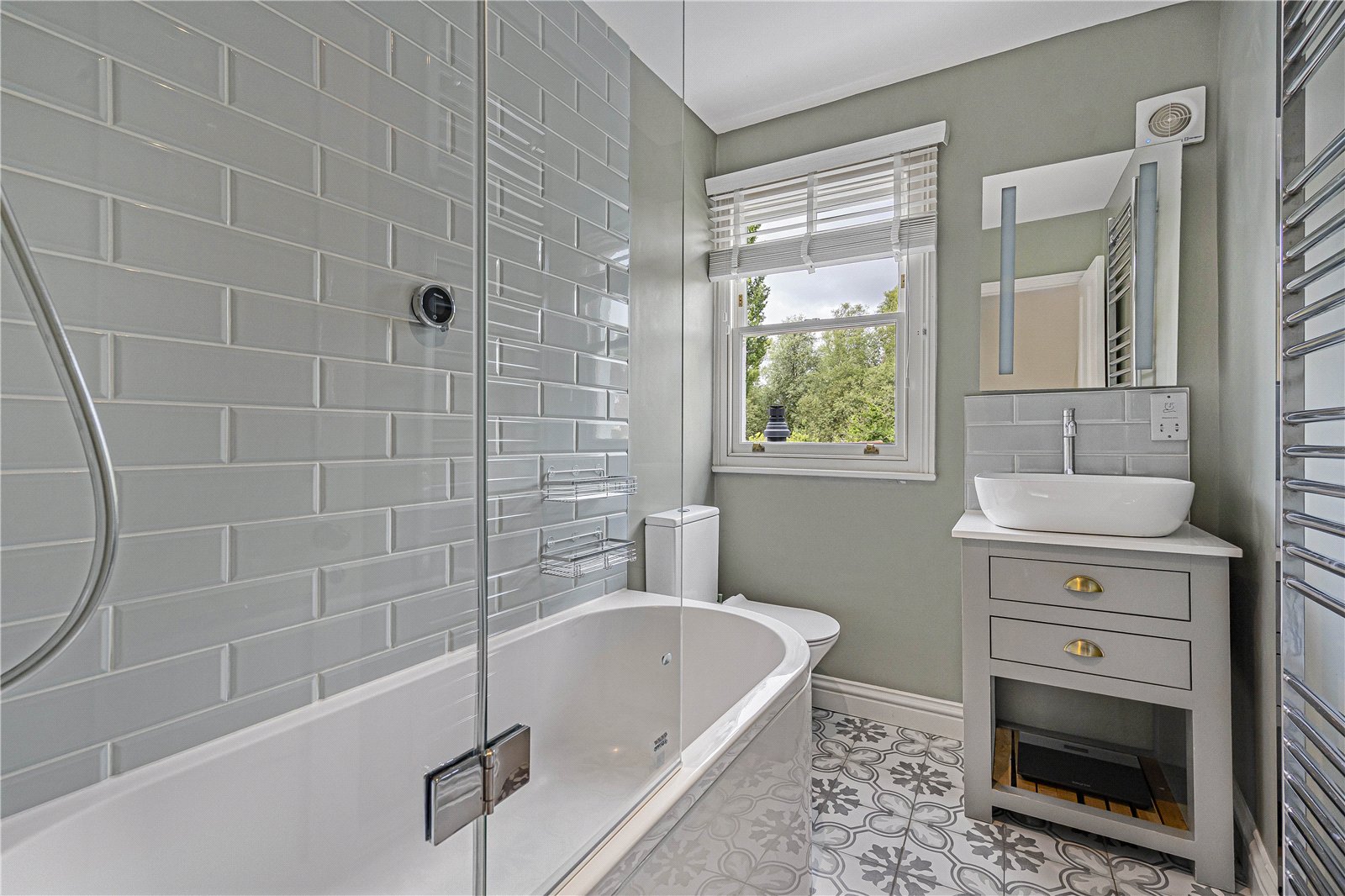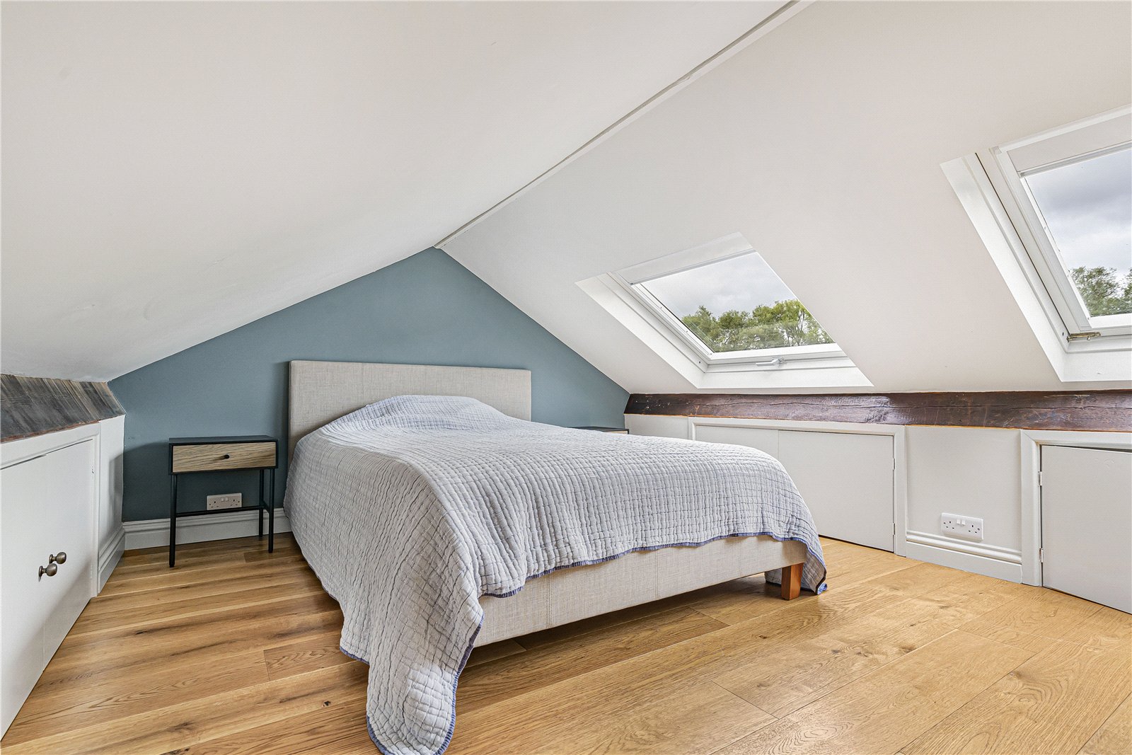 On the first floor of the property, there are two bedrooms and a family bathroom. The rear bedroom has a large built-in wardrobe and garden views. Upstairs, the loft room is currently arranged as a guest room with additional storage.