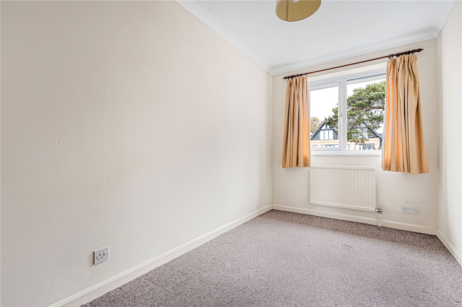 The accommodation includes an entrance hall with generous storage and access to a modern bathroom. There are two well-proportioned double bedrooms and a smaller single bedroom, all offering pleasant views over the surrounding area.