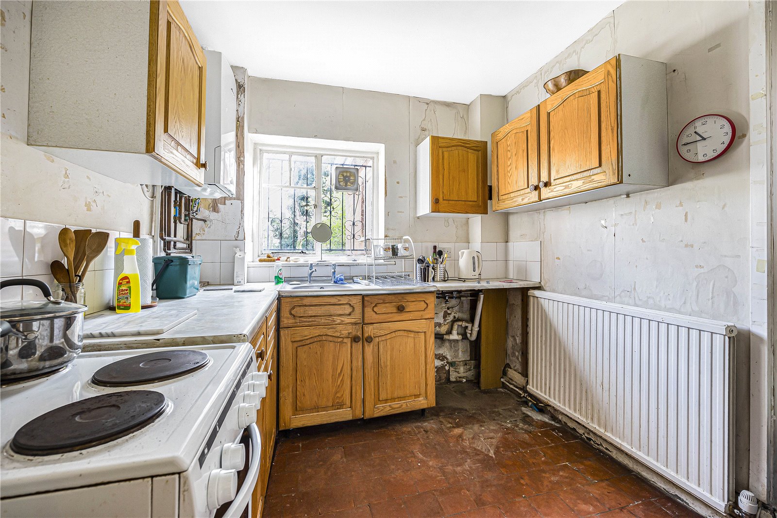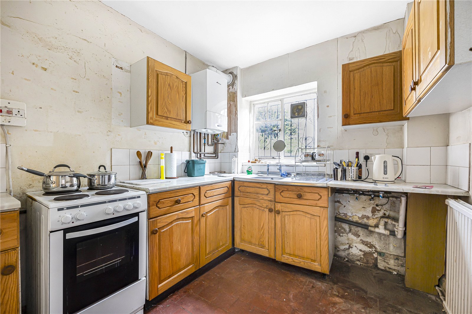 The accommodation currently consists of entrance hall, kitchen, and double reception with doors to the rear garden. Upstairs are two double bedrooms, a single bedroom and a family bathroom and separate W.C.