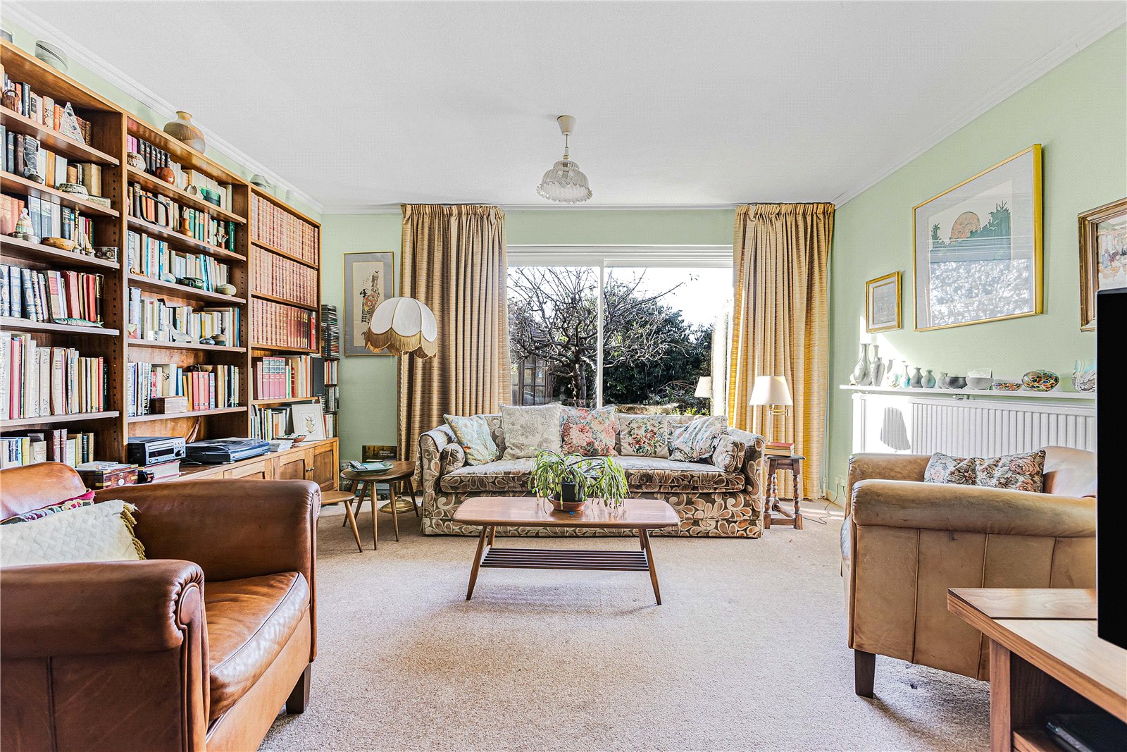 A welcoming hallway leads to a spacious sitting room, a rear living room with garden access, and a central dining room. The kitchen offers practical space with potential for updating, and a downstairs W.C. completes the ground floor.