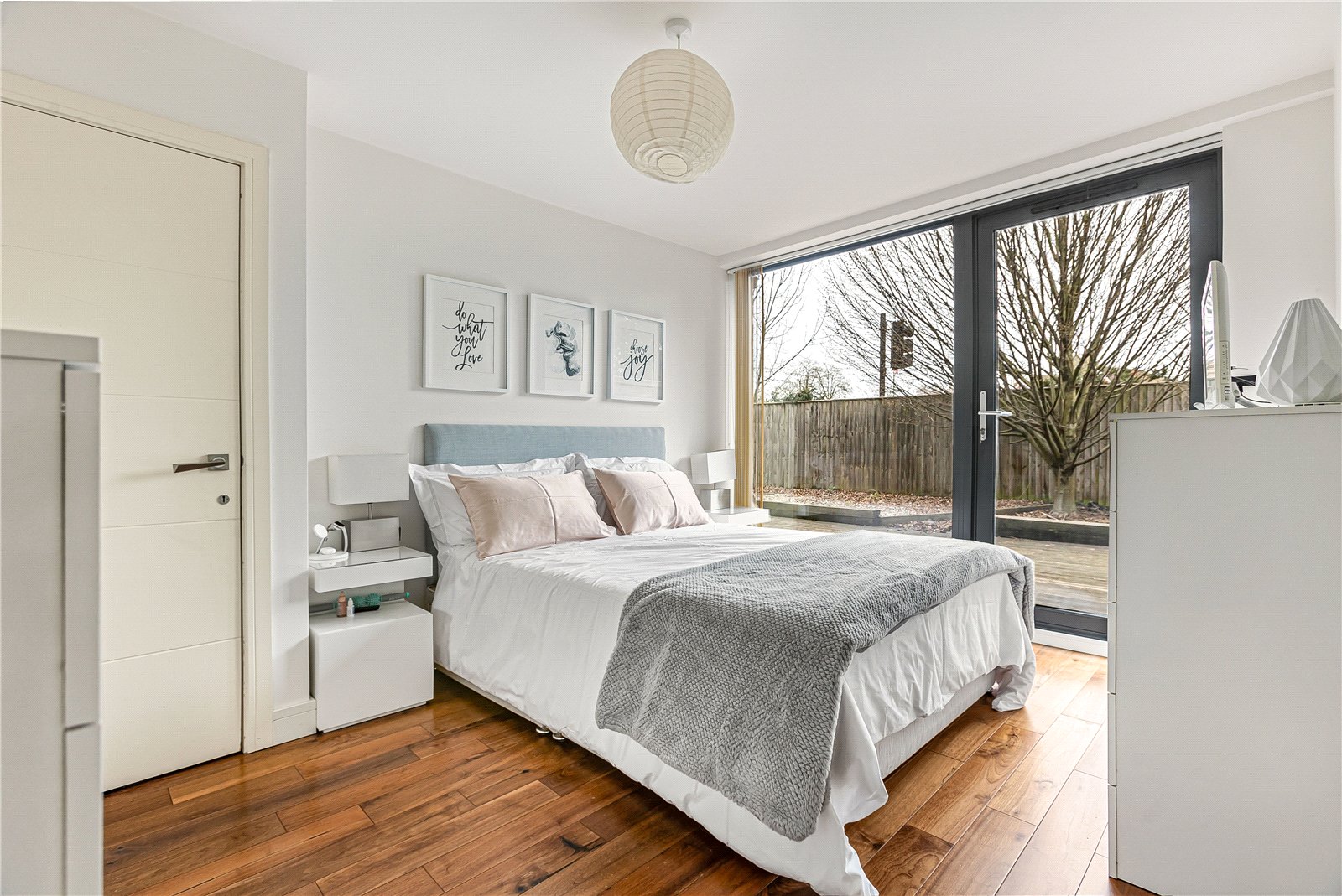 Leading from the kitchen along the hallway is a spacious double bedroom and a contemporary family bathroom. Further along is the impressive principal bedroom, which benefits from a generous en-suite bathroom. Like the main living space, the principal bedroom is fitted with bi-fold doors, allowing an abundance of natural light to fill the room and offering direct access to the garden.