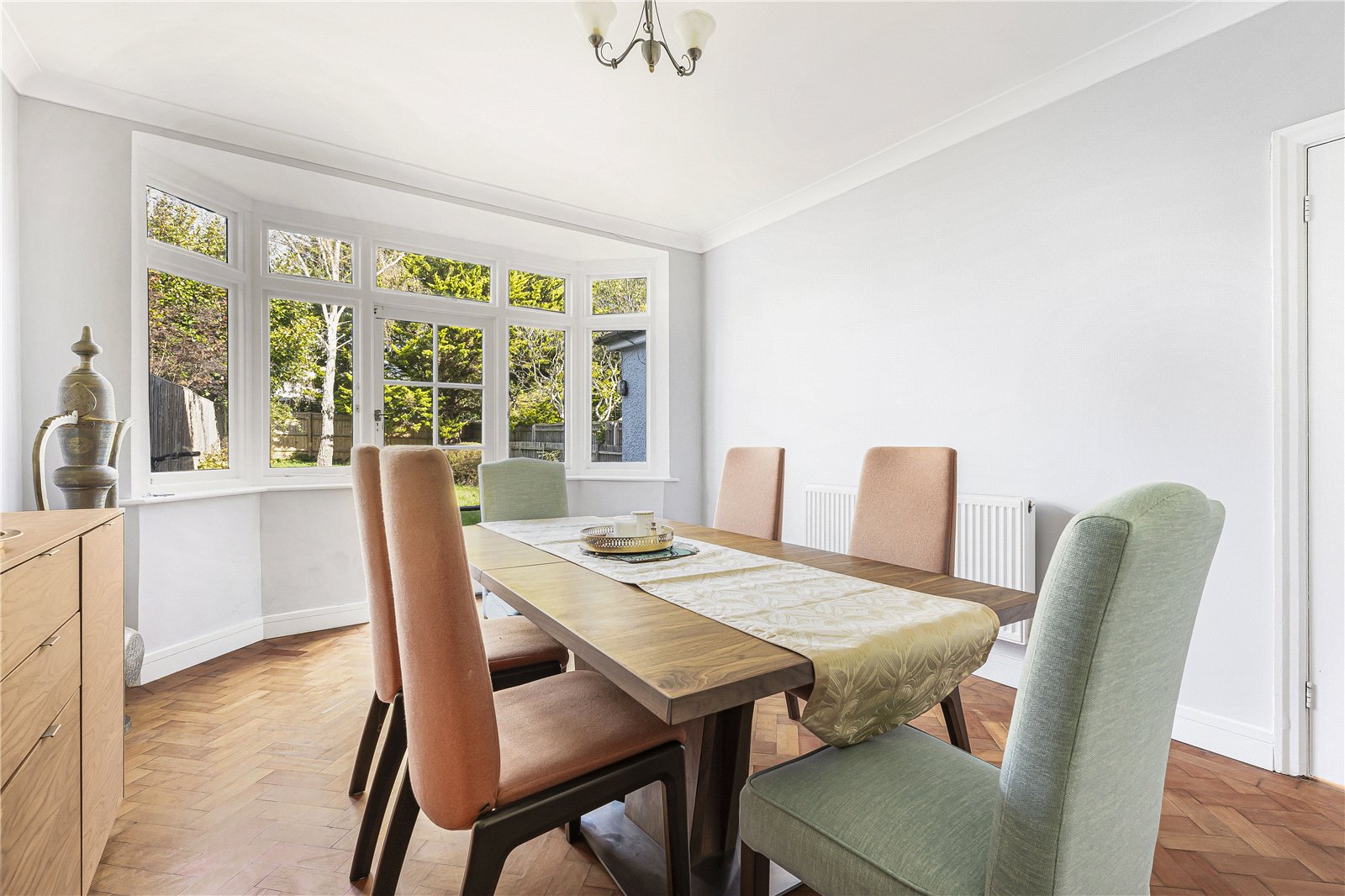The property opens into a welcoming entrance hall, leading to two well-proportioned reception rooms with original wood flooring throughout. At the front, the bright sitting room features a bay window and original charm, while the rear dining room looks out onto the 95ft garden, with direct access, creating a perfect setting for entertaining.
