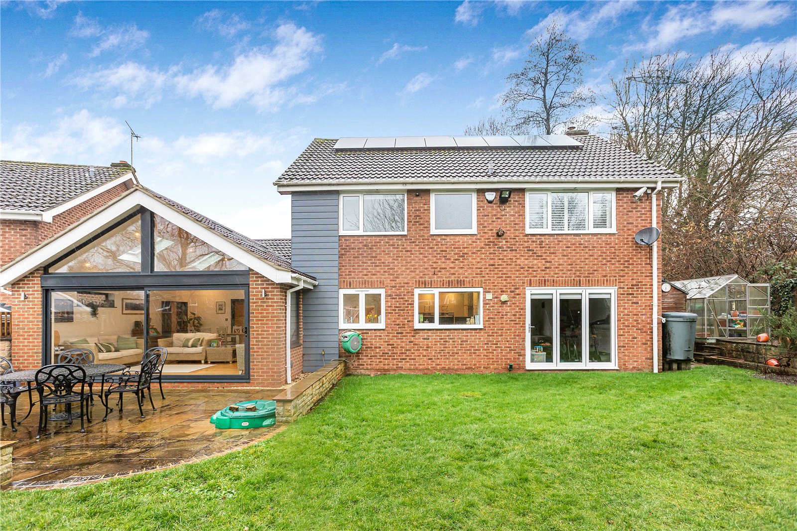 The rear garden is laid mostly to lawn with established beds and borders, a patio with wooden shed, greenhouse and wooden potting shed. To the front of the property is a secluded driveway providing ample off-road parking for several vehicles.
