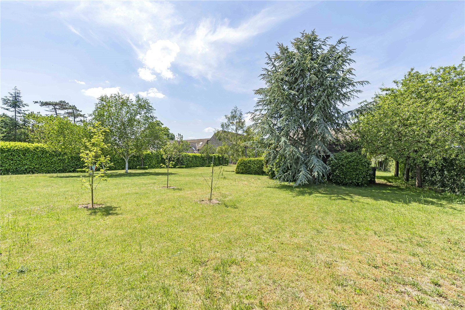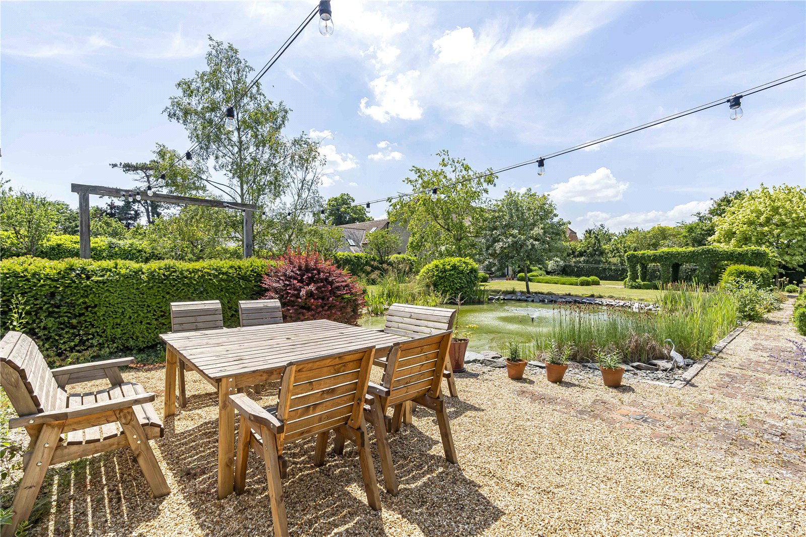 Approached via a private lane, the property benefits from driveway parking for multiple vehicles and an expansive landscaped garden featuring a picturesque pond.
