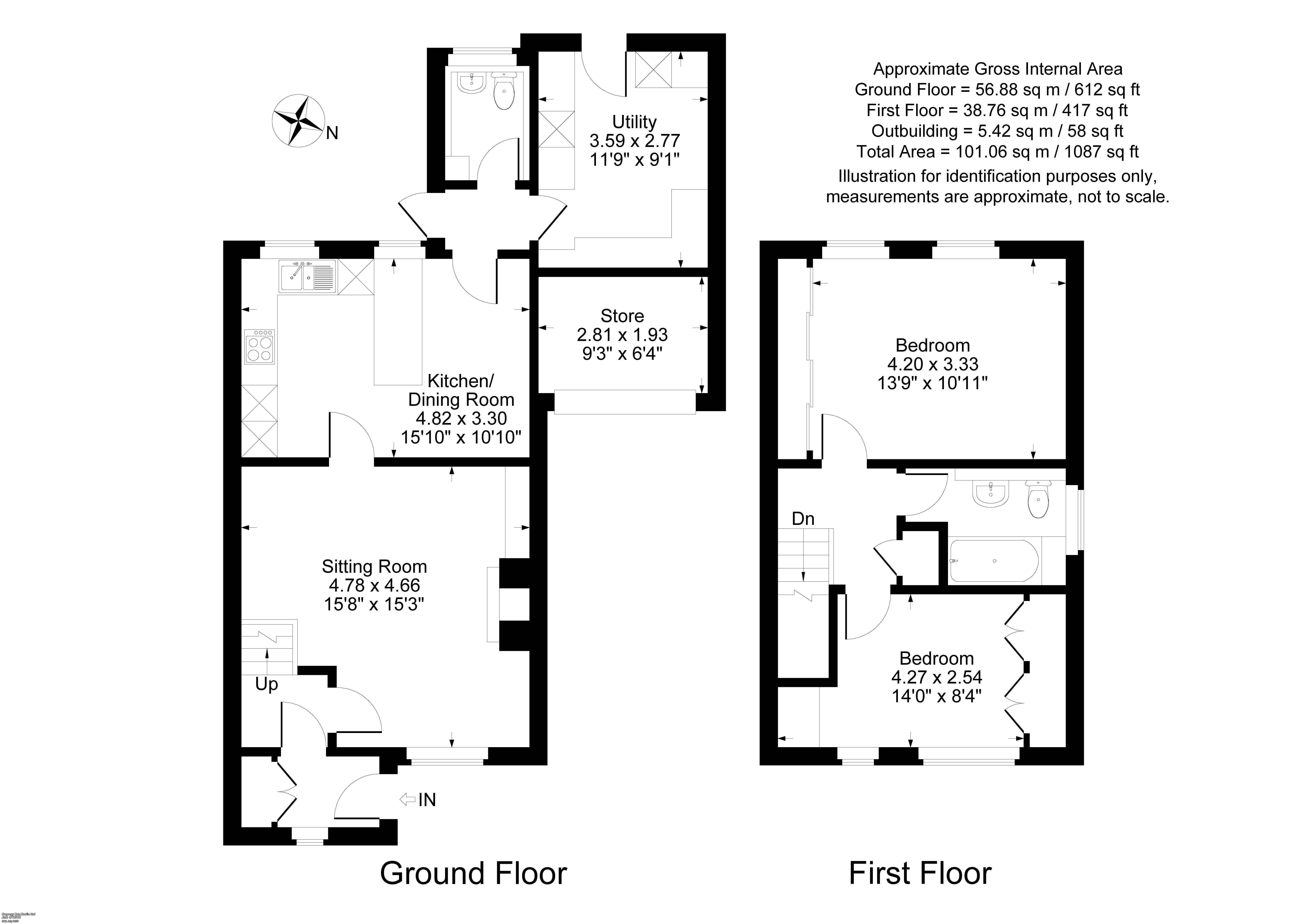 Cloakroom - Double glazed window to rear aspect, low level WC, hand wash basin.
