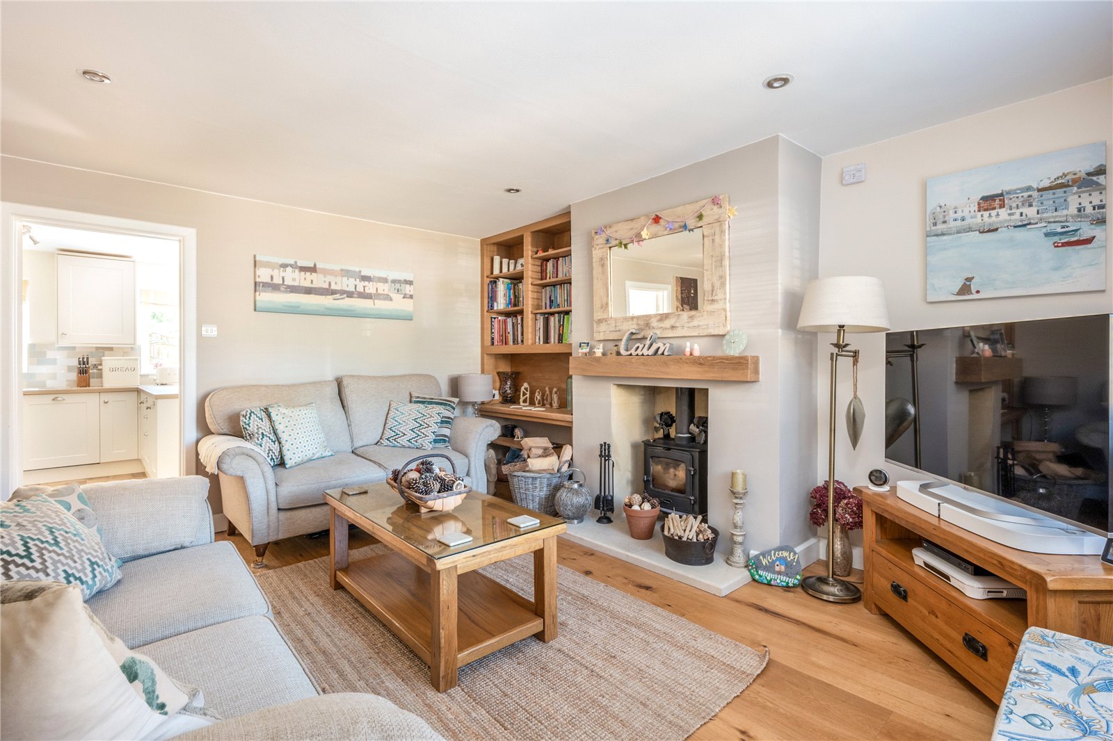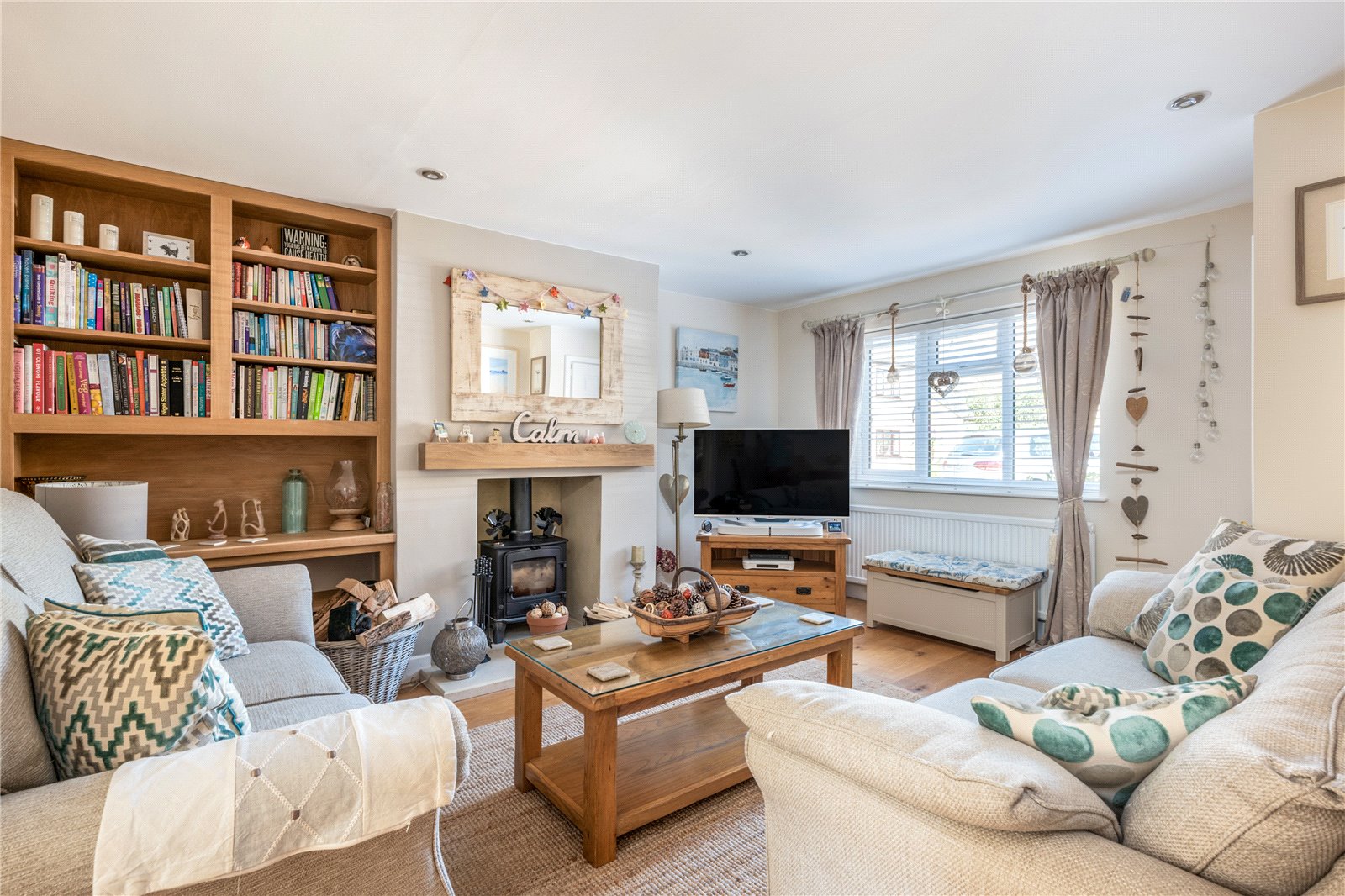 Sitting room - Double glazed window to front aspect feature fireplace with wood burner, built in shelving into chimney recess. Engineered oak floorboards.