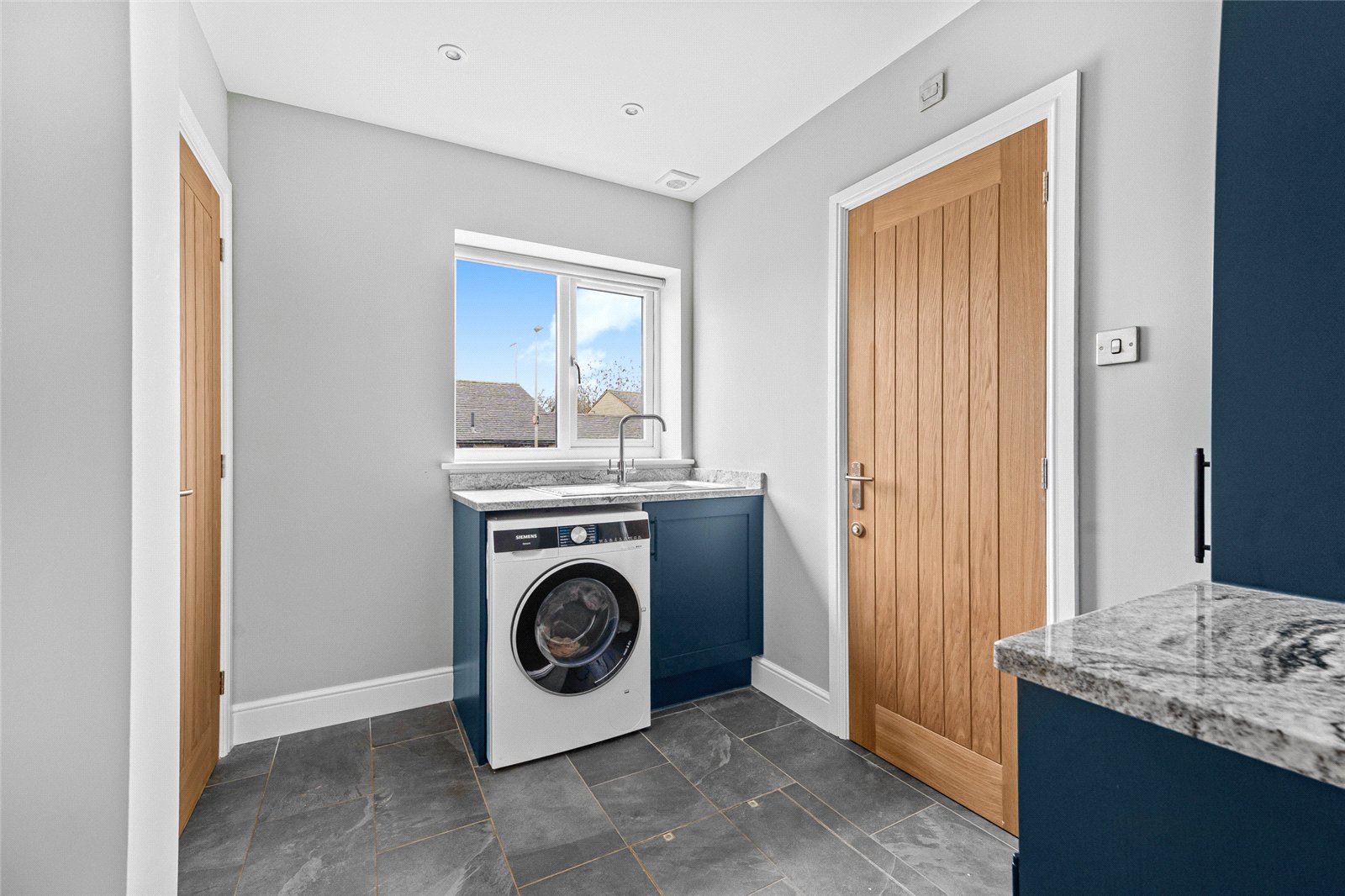 Utility Area: Double-glazed window to the front aspect; stainless-steel sink unit; plumbing for washing machine; built-in cupboard.