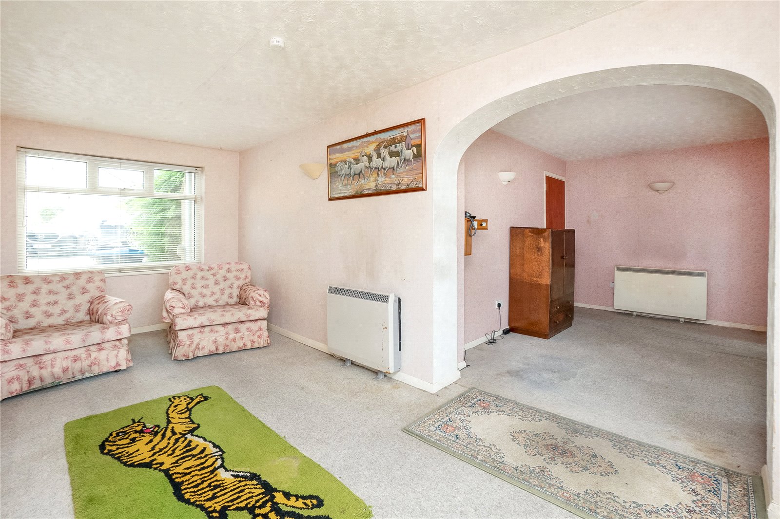 Door to - Sitting Room double glazed window to front aspect, stairs to first floor, storage heater.