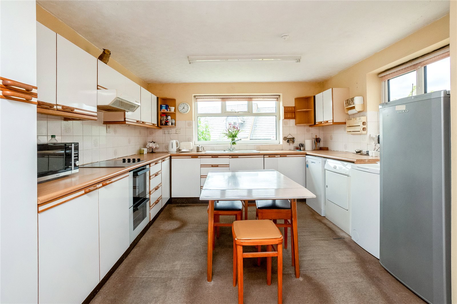 Kitchen - Fitted with matching base wall level units, integral oven, sink with draining board, freestanding space for washing machine, tumble dryer, fridge freezer double glazed windows to side aspect and rear.