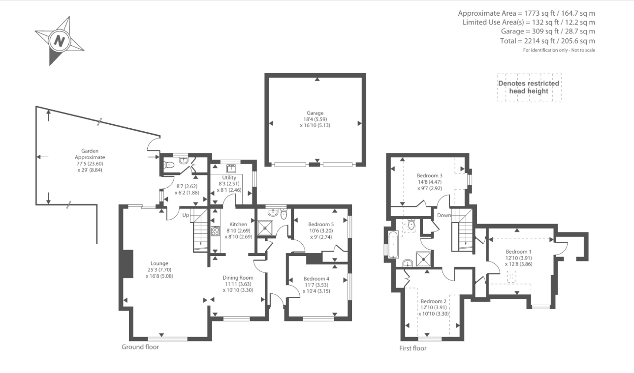 Front Garden: Predominantly laid to shingle providing off street parking for three vehicles. There is a double garage with electric doors. A pathway provides pedestrian access to the rear garden.
