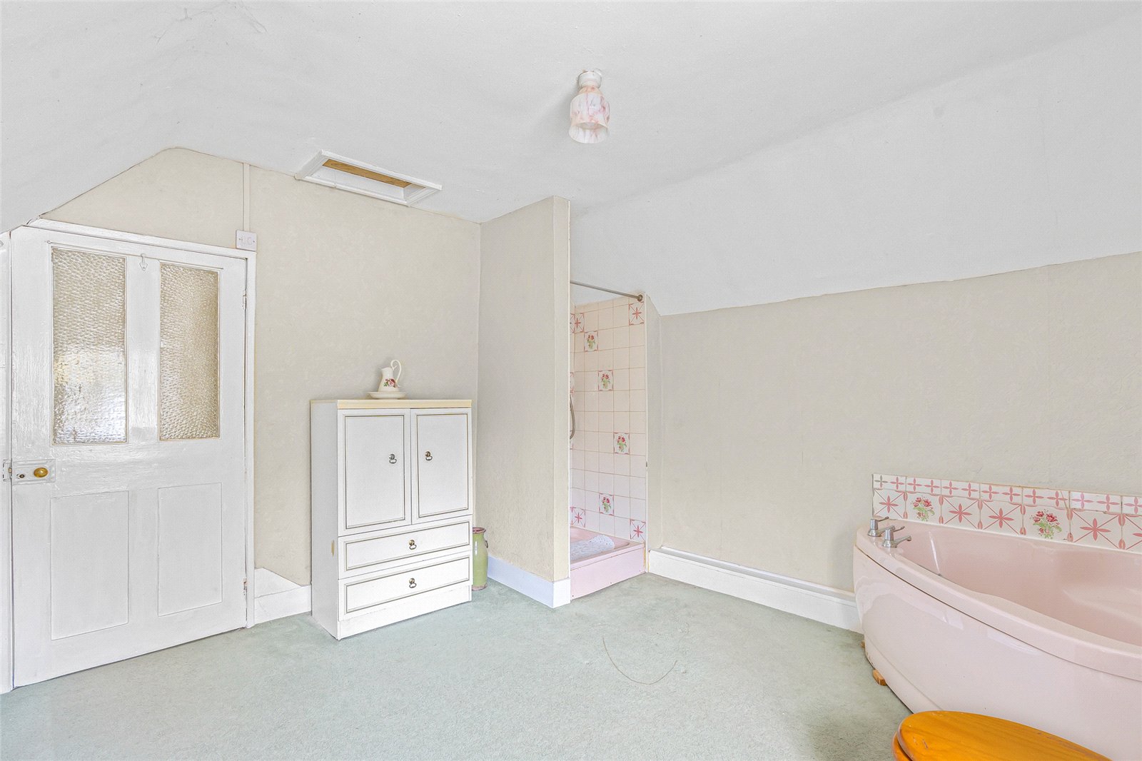 Bathroom: Sash window to rear aspect, corner bath, low level WC, hand wash basin, shower cubicle, brace and latch door to
