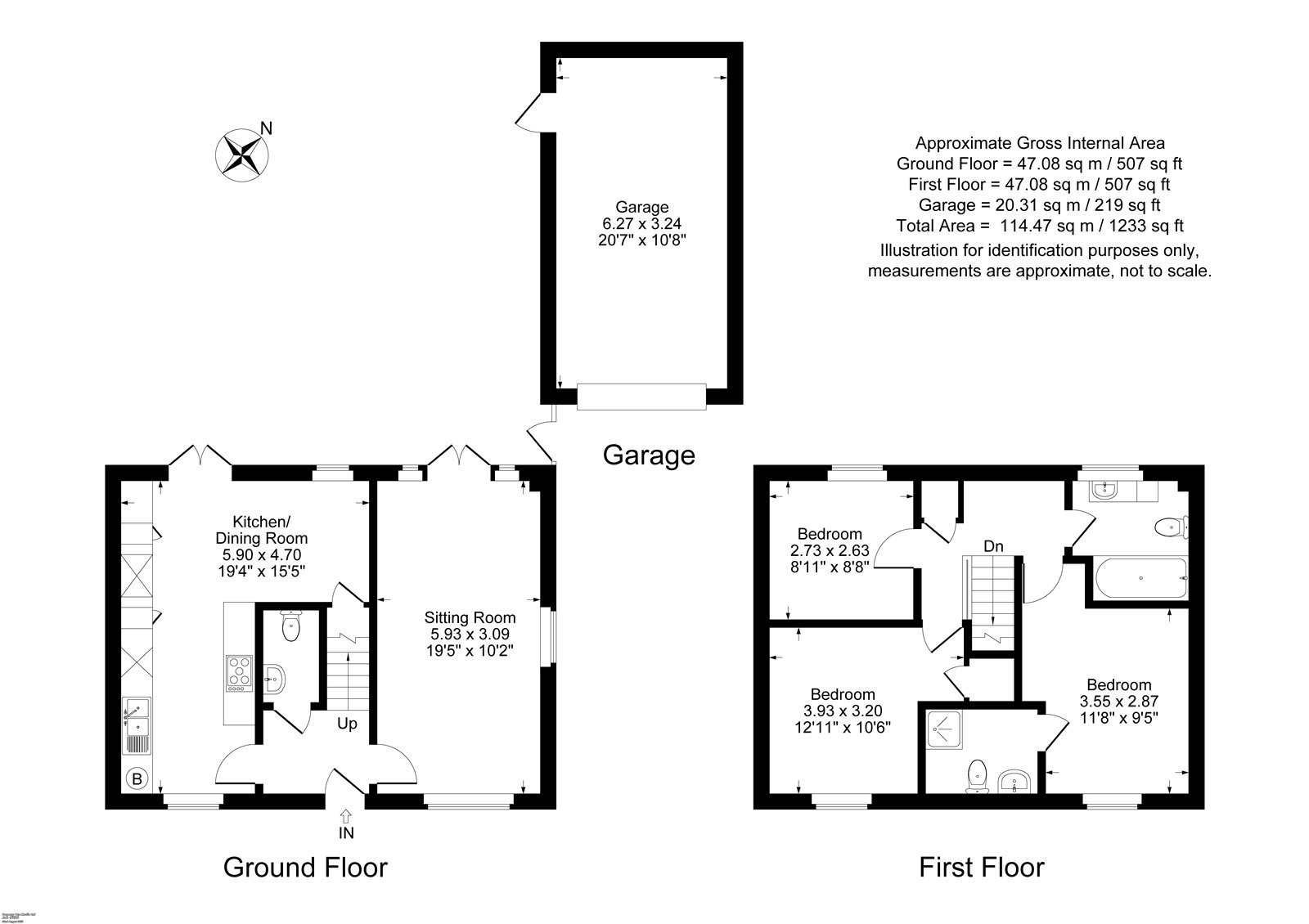 Detached Garage with Up and Over Doors, Pedestrian Access to Rear Garden. Loft Storage Space with Lighting and Power Connected.