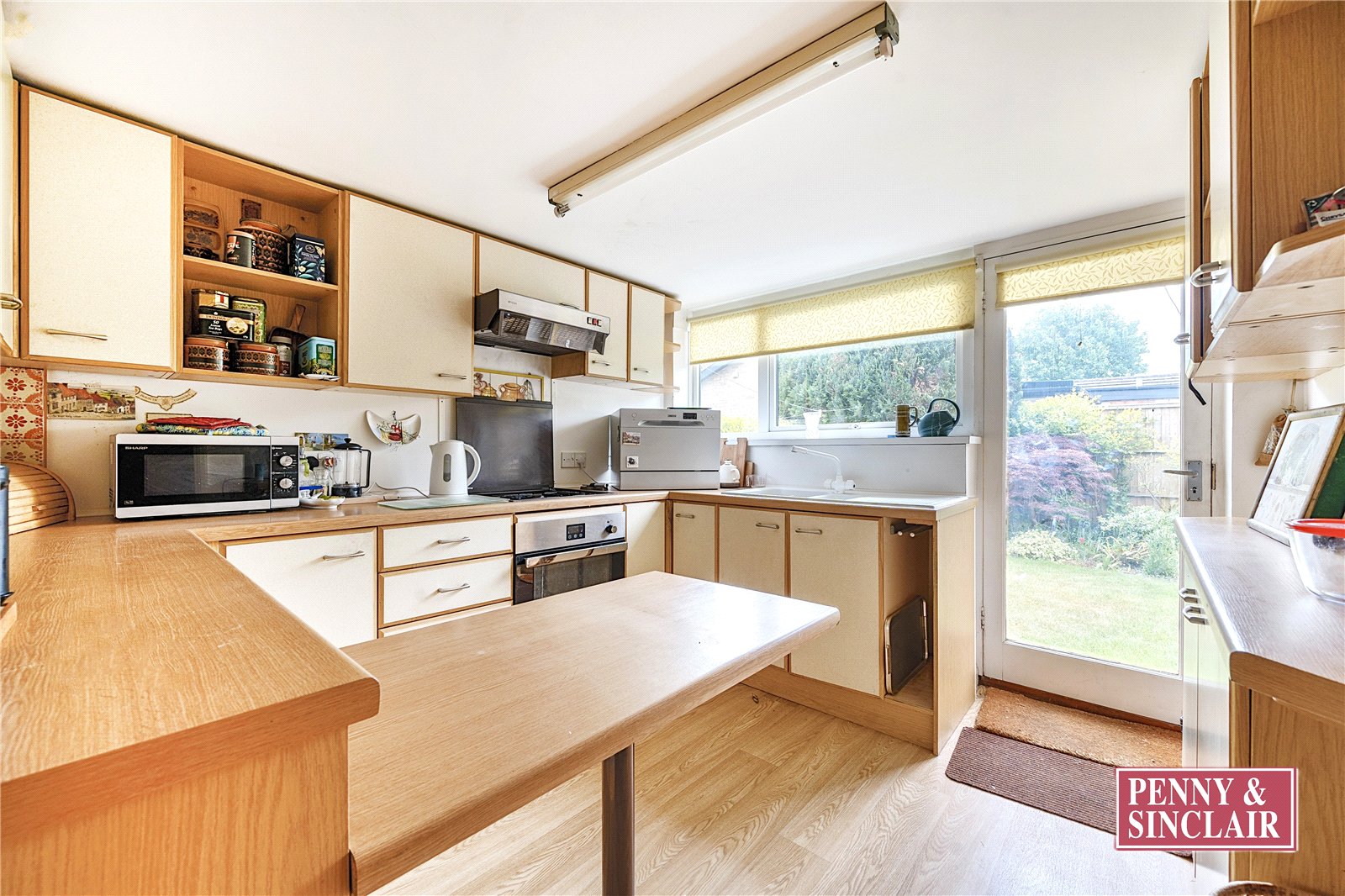 The property has been well cared for over the years and offers excellent scope for updating. The sitting room is a fantastic size, with parquet flooring and large windows overlooking the beautifully maintained garden. The plot totals 0.2 acres and is a standout feature of this home.