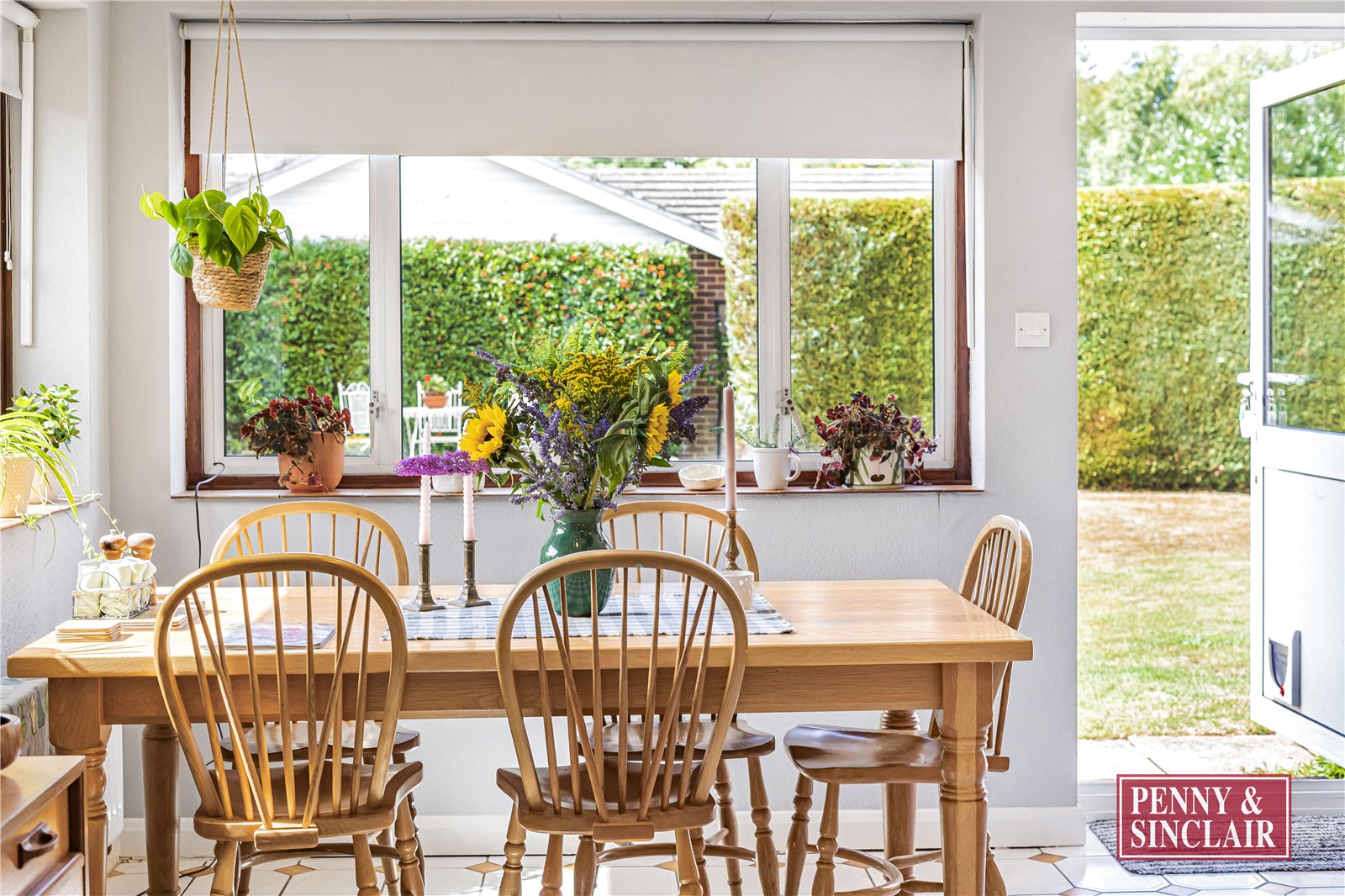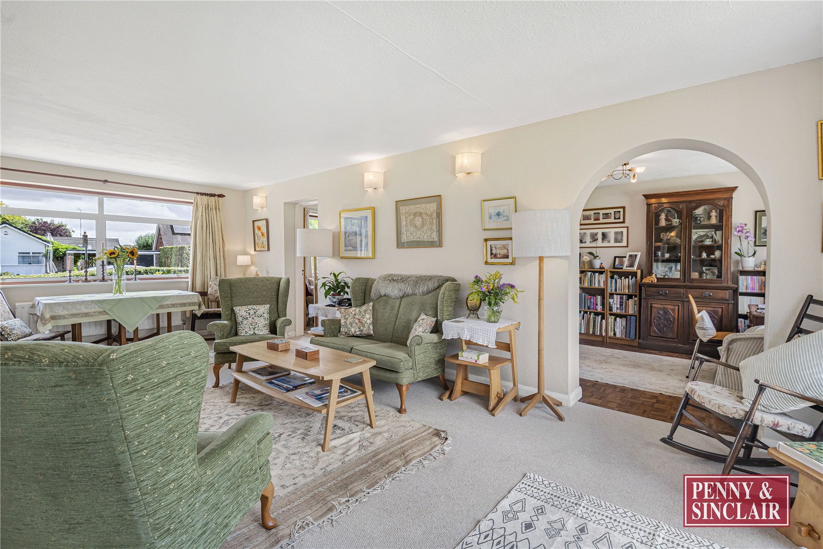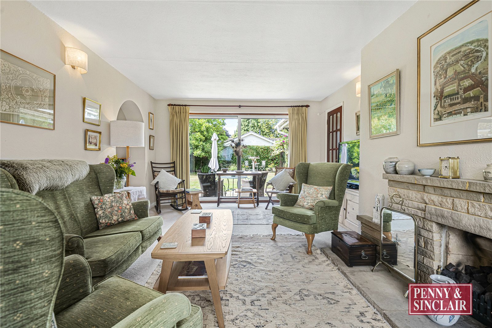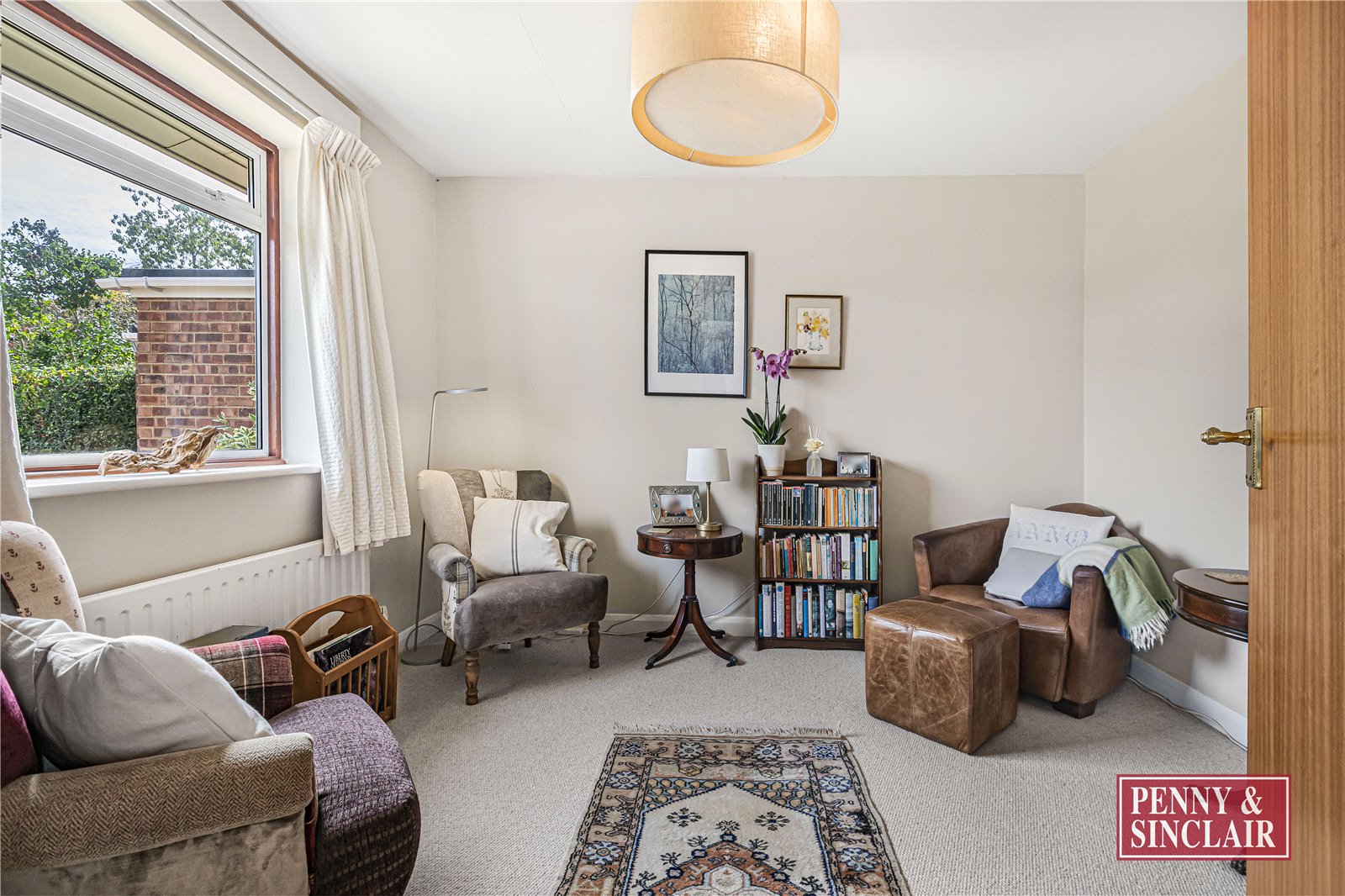 The accommodation is extensive and versatile. A superb sitting room, drenched in natural light, features a large picture window at one end and glazed sliding doors at the other, framing a beautiful outlook over the private, enclosed garden. Leading off are two further reception rooms, currently arranged as a comfortable snug and a study.