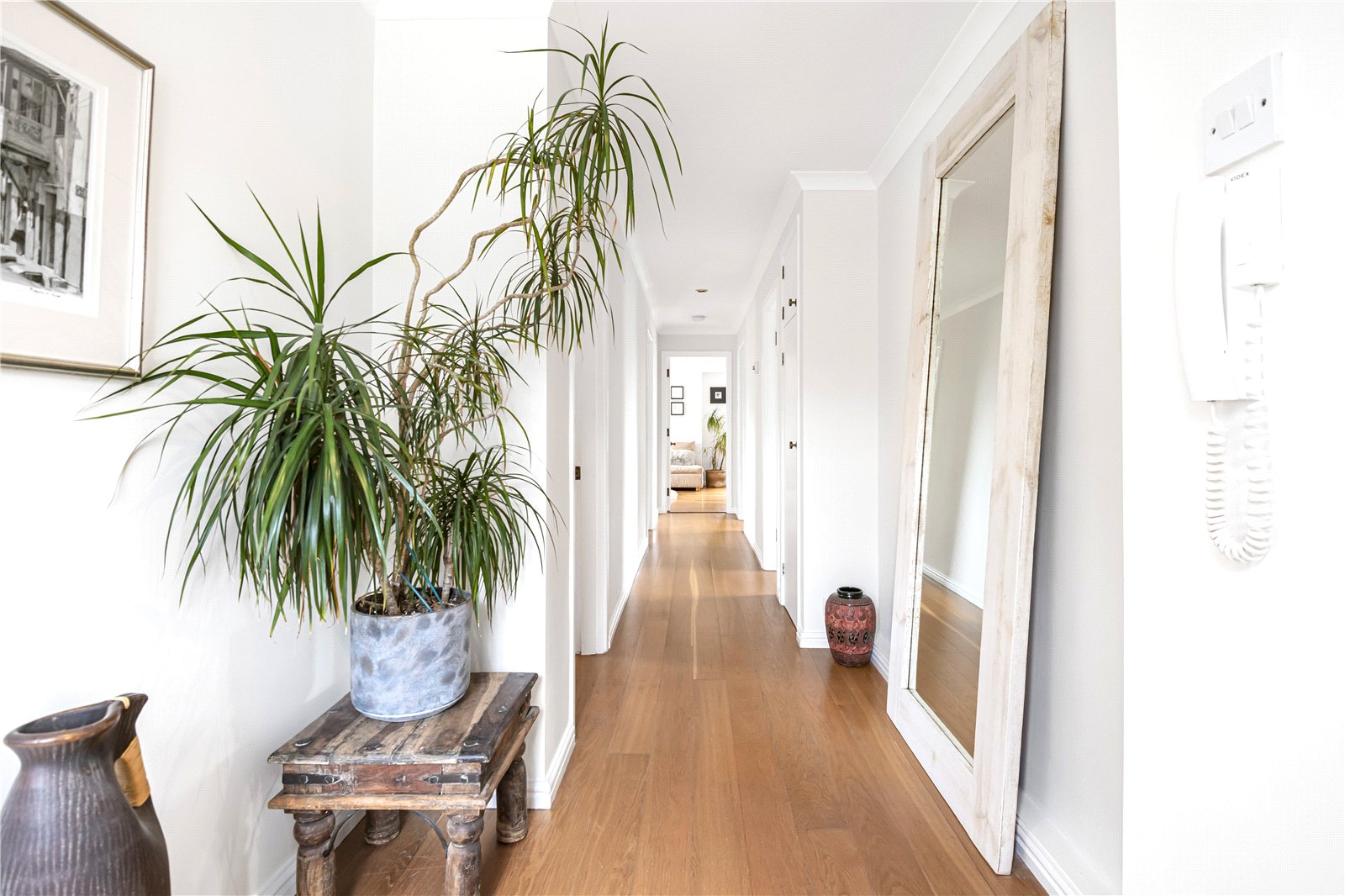The communal entrance hall leads up two flights to Apartment 12, which has its own bright and airy hallway, enjoying a picturesque view across Henley Park to the front. Straight ahead is the third bedroom, currently used as an indulgent
