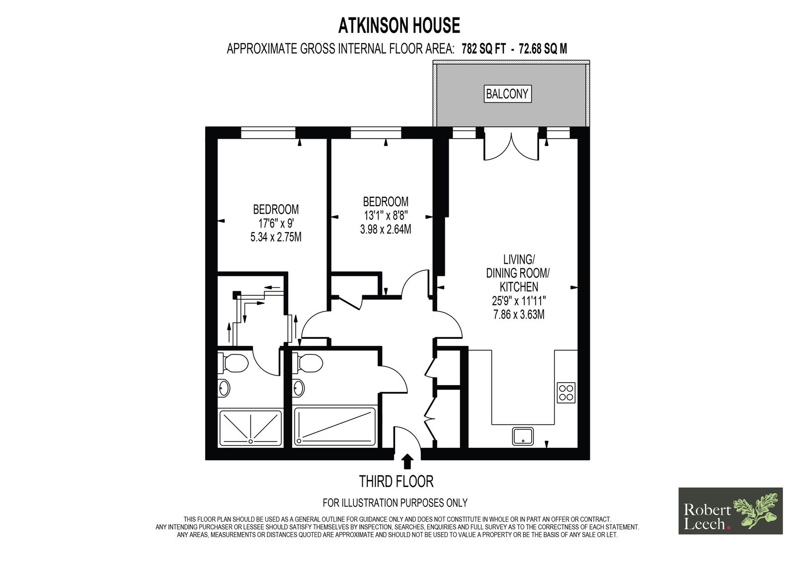 Accessed via lift or stairs, the accommodation is well arranged and includes two generous double bedrooms, two contemporary bathrooms and a spacious open-plan kitchen, dining and living area. Floor-to-ceiling glazing enhances the sense of space and light throughout the living area, with doors opening directly onto the balcony, creating an ideal setting for both everyday living and entertaining.