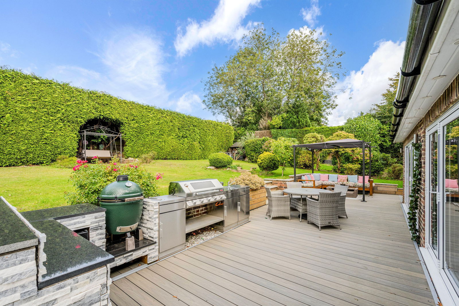 The wraparound garden offers beautiful garden views, with a terrace providing an outside kitchen area. Mature shrubs and hedges provide compete privacy and the lawn areas offer great spaces for children to play.