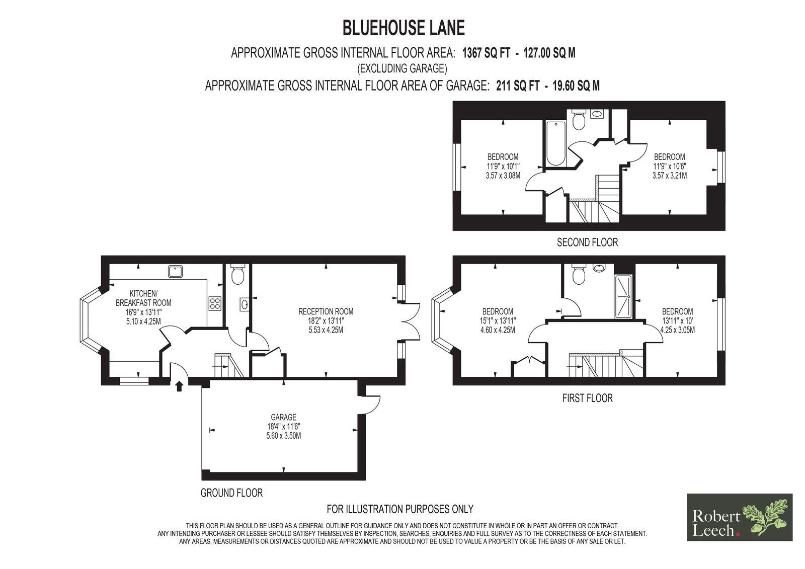 Upstairs, the principal bedroom enjoys the benefit of an ensuite shower room, with a further double bedroom on the first floor. Two additional double bedrooms and a family bathroom occupy the second floor, offering excellent flexibility for families, guests or changing needs over time.