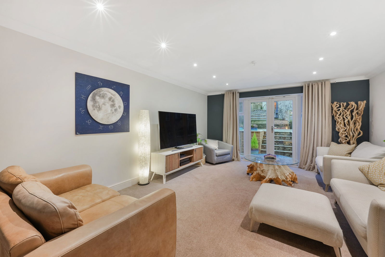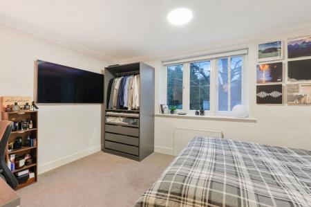 Outside, the private rear garden opens onto a large communal garden shared by just six homes – a rare and much-loved feature that creates a feeling of openness and community. A beautiful garden studio, currently used as a yoga room, provides a peaceful additional space, ideal as a home office, creative studio or retreat. A single garage and driveway parking complete the picture.