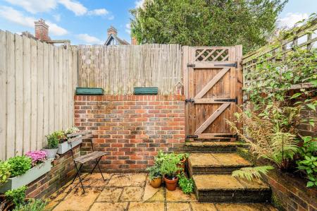 OUTSIDE -Courtyard garden, fenced and gated with patio, which provides enough space for a a small table and chairs for alfresco dining.