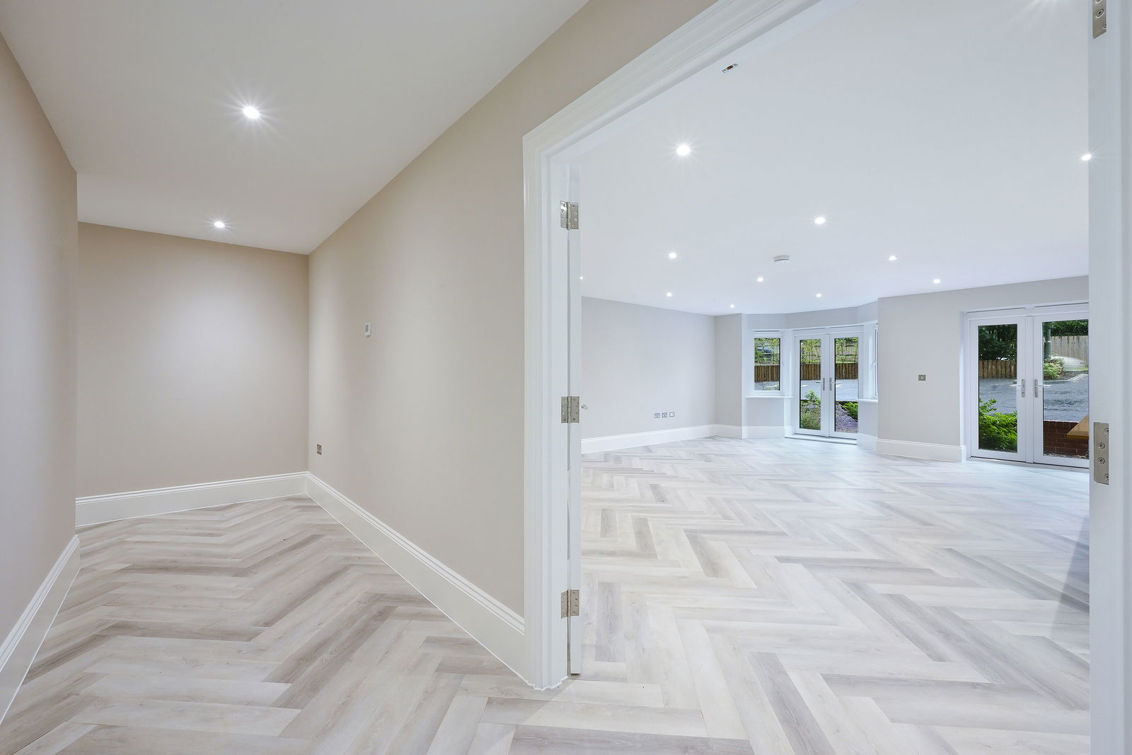 White downlighters fitted to bathrooms, en-suites, hallway and kitchen areas